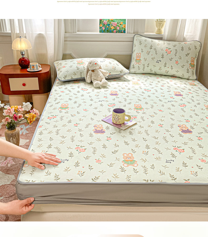 (总)女子家纺 2026新款大斜纹复合冰丝凉席-床笠款,爱心气泡粉-床笠款,萌熊印象-床笠款,奶油草莓-床笠款,拈花湾蓝-床笠款,七彩龙-床笠款,奇妙幻想-床笠款,水木年华-床笠款,午后茶花-床笠款,悠悠小元-床笠款,尤克克里粉-床笠款