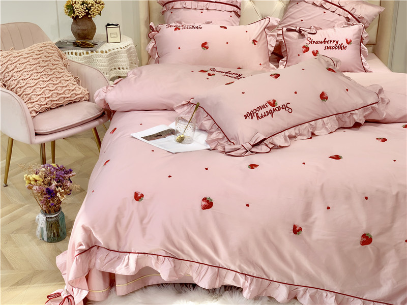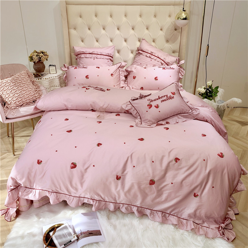 当前位置: 91家纺网 > 商品网购 > 床品套件 > 四件套 > 长绒棉四件套 > 馨蕊家居 2021新款60长绒棉绣花四件套 粉黛-小红莓