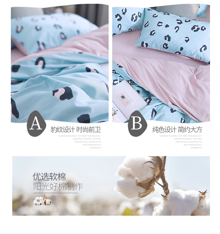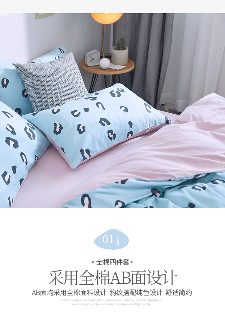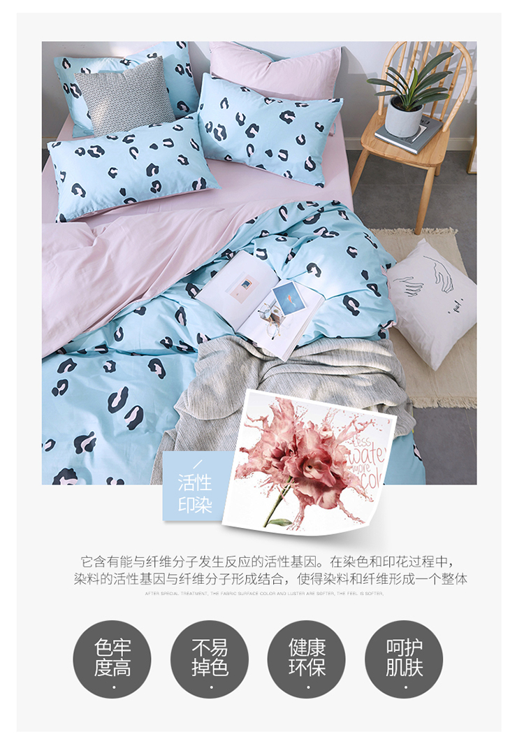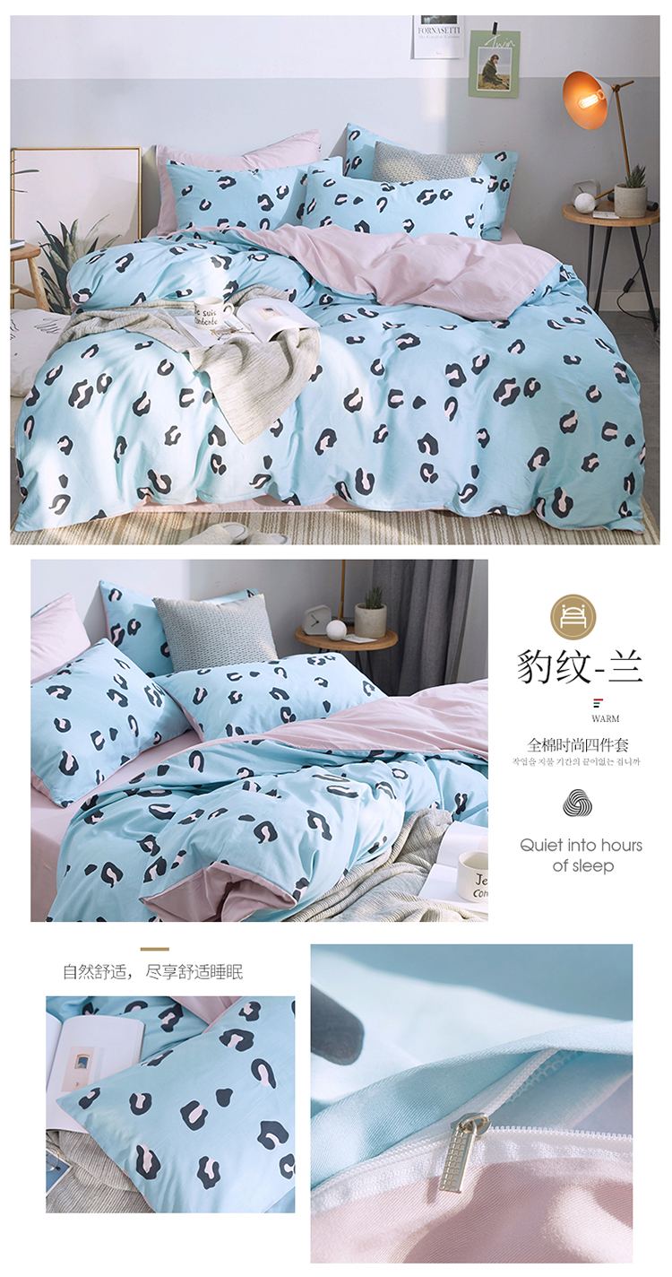 卧趣家纺 2019全棉简约喷气套件 豹纹-兰