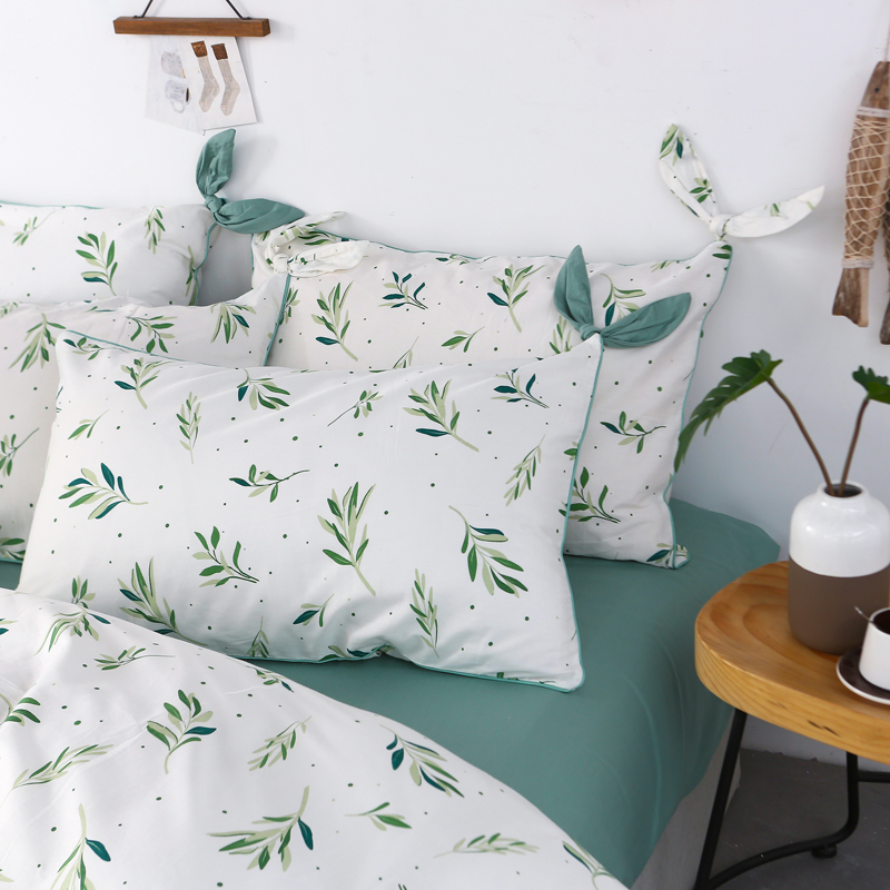 一米阳光 2019纯棉小清新兔耳朵镶边套件 绿意