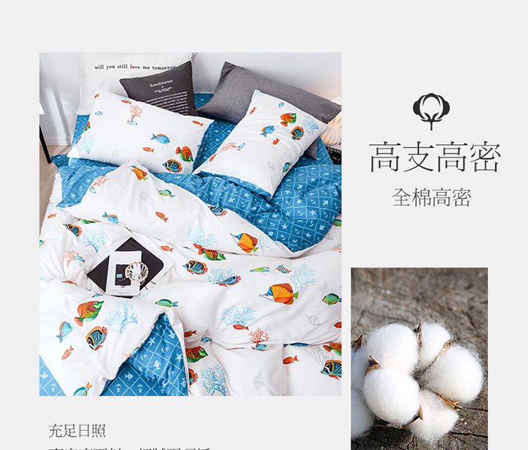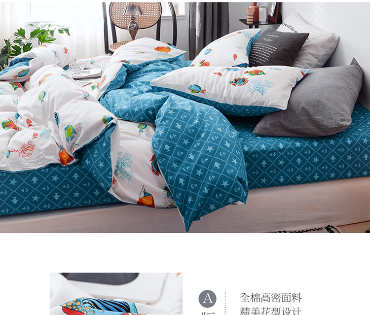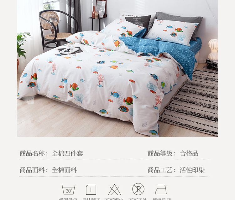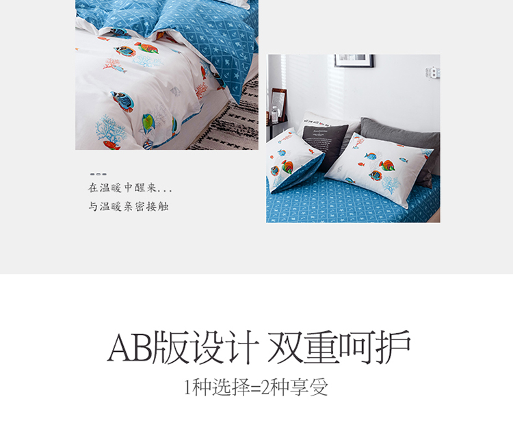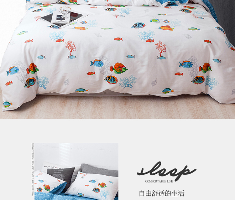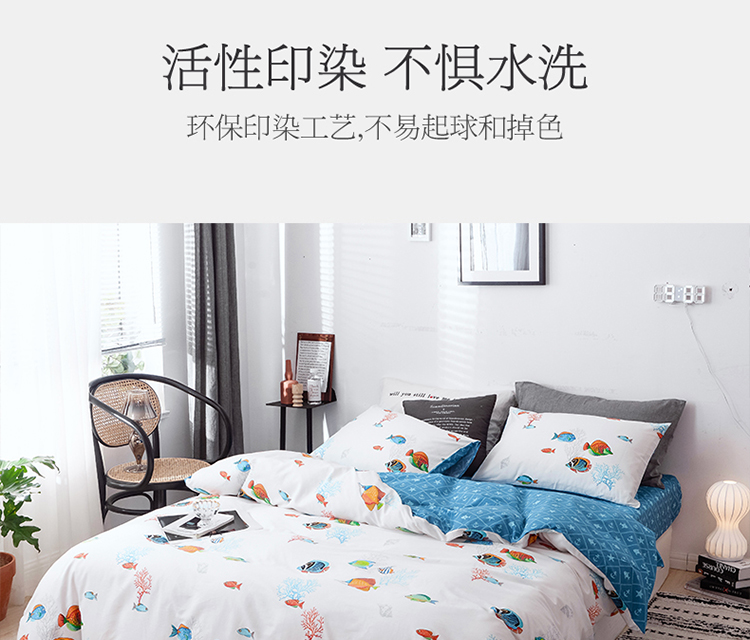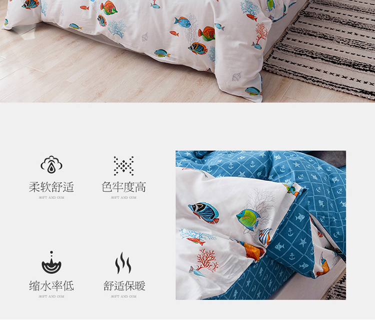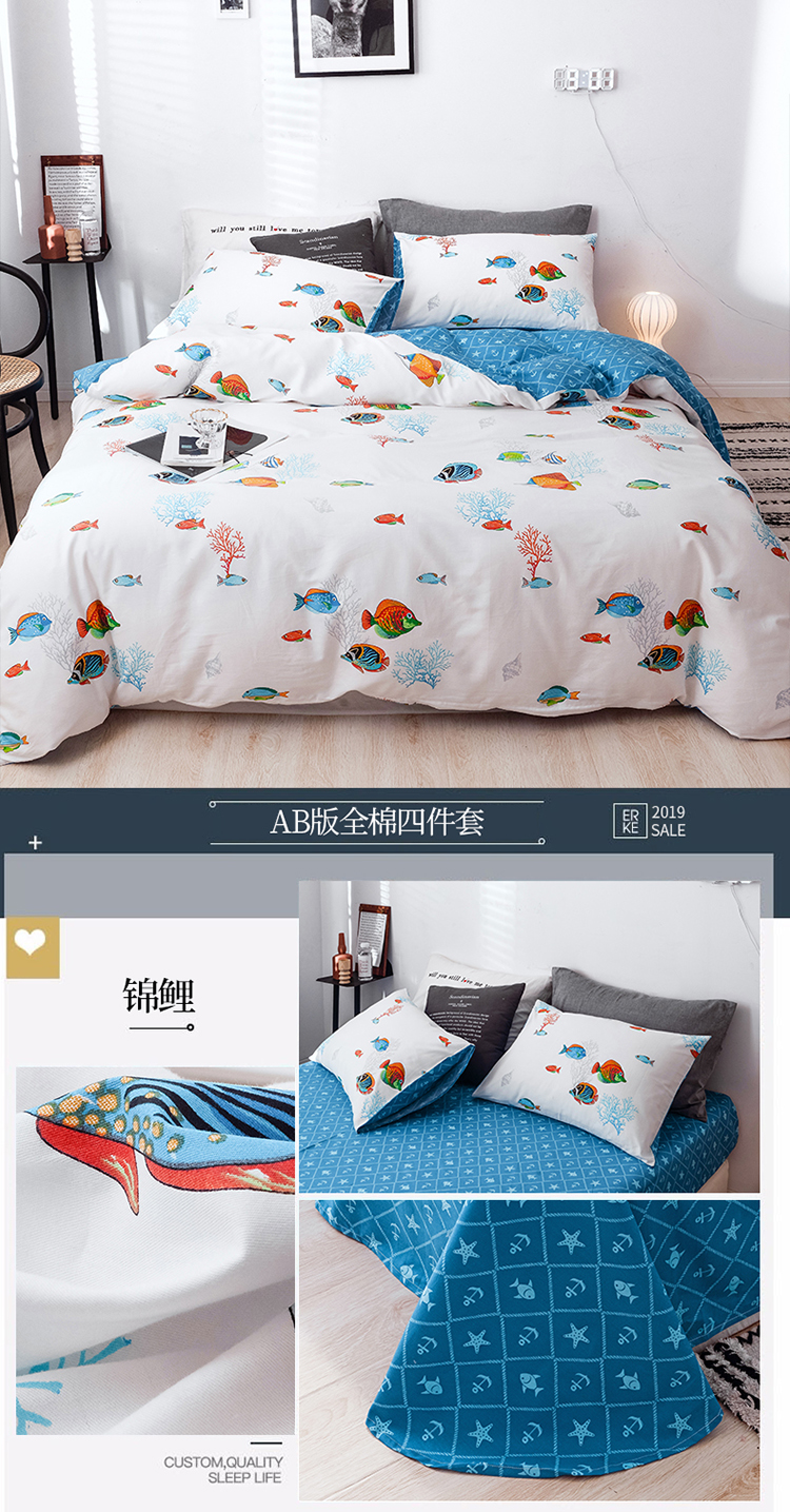商品名称:沐棉 2019新款13370小卡通小清新四件套 床单款 锦鲤