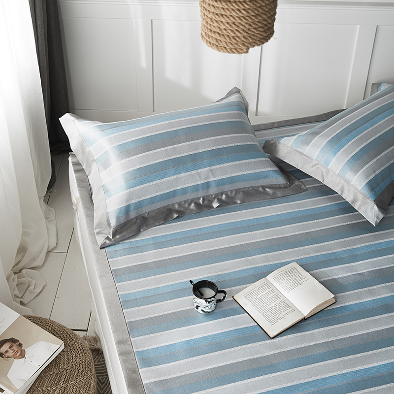 本希 提花水洗养生席三件套 蓝条纹