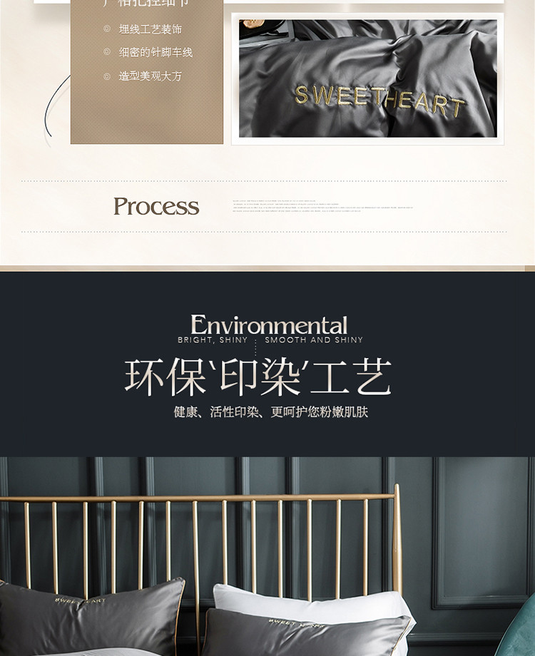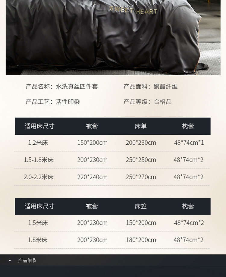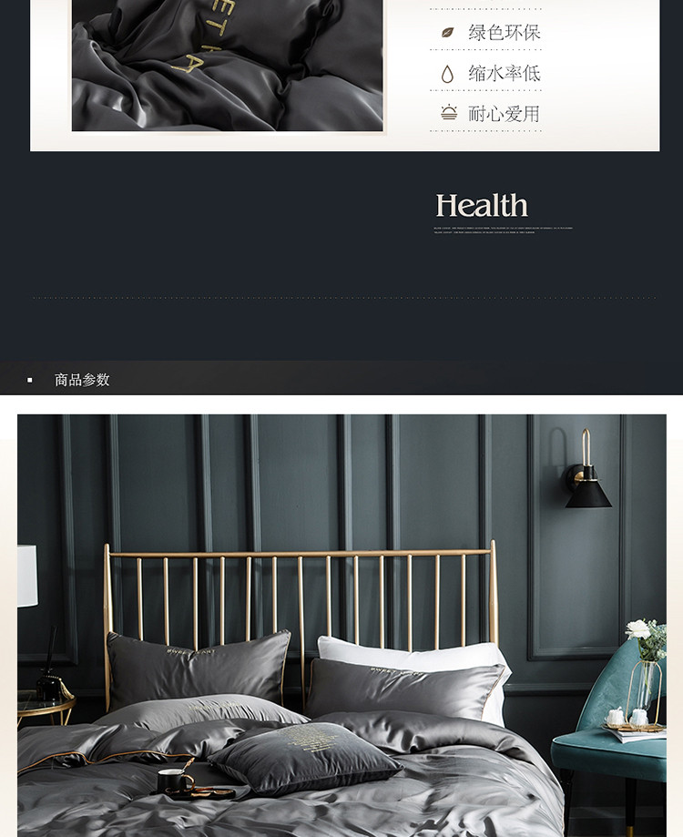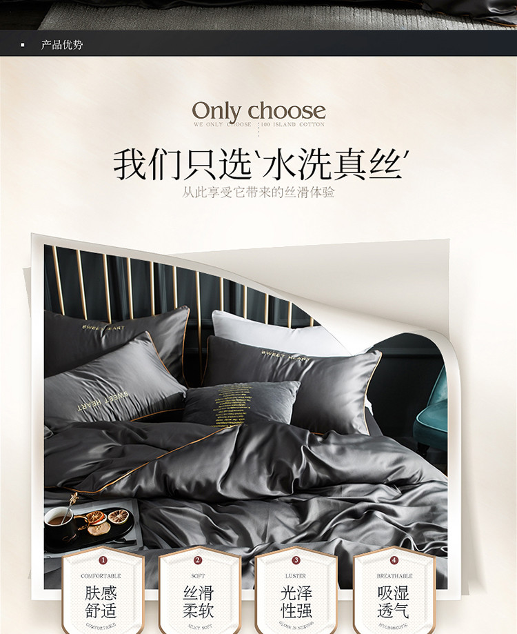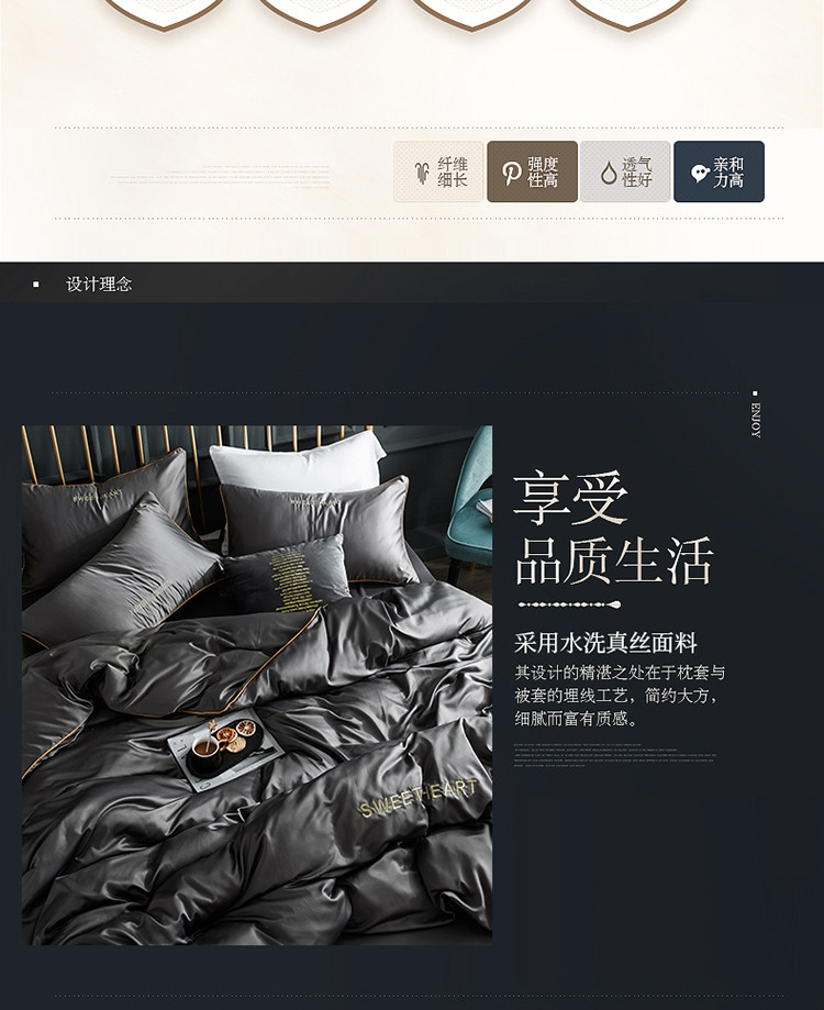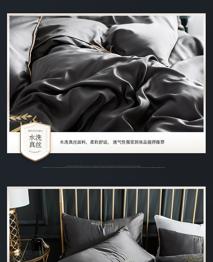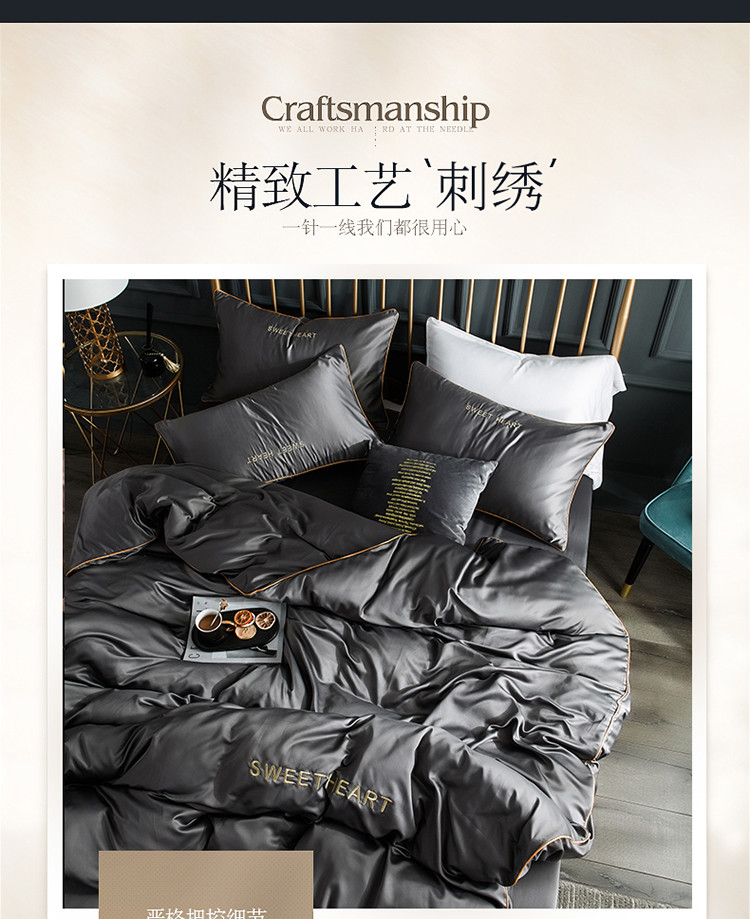 商品名称:琪格格 2022新款水洗真丝刺绣四件套 你好爱情-雅韵灰