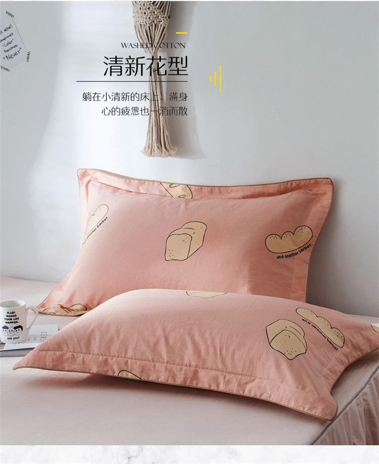 万盛家纺 全棉滚绳款单品枕套一对 爱情面包