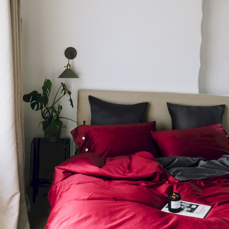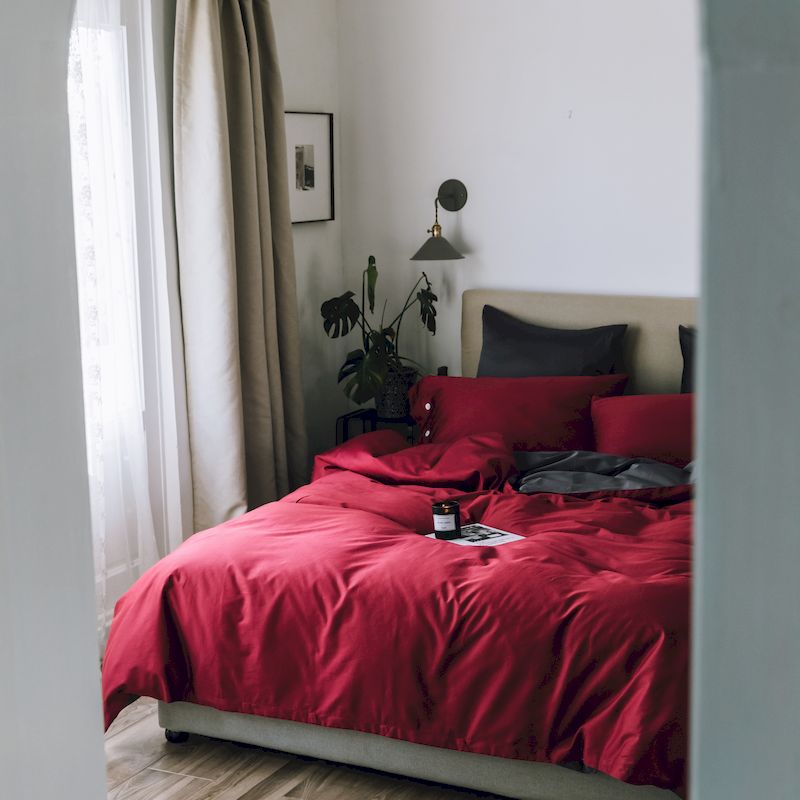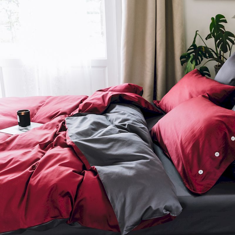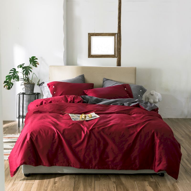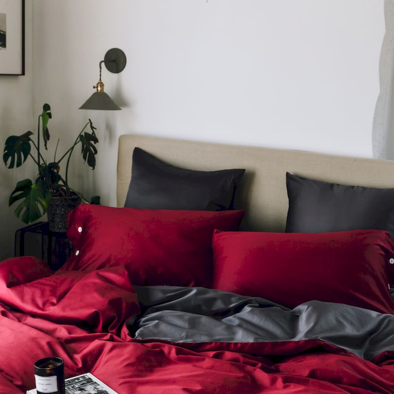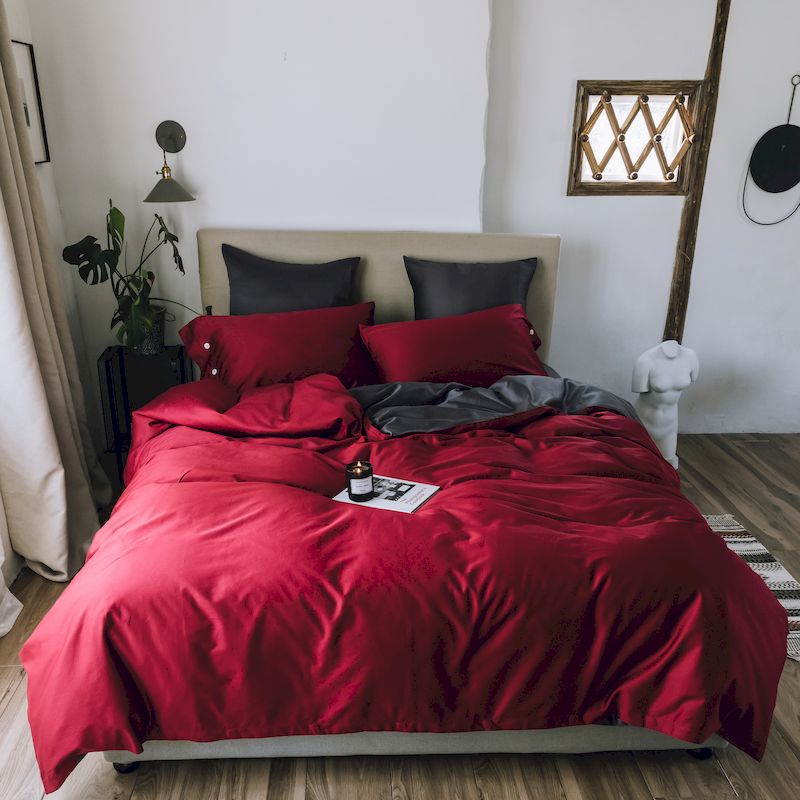 涞澳家纺 2019新款60长绒棉拼色一网红色四件套 红配黑