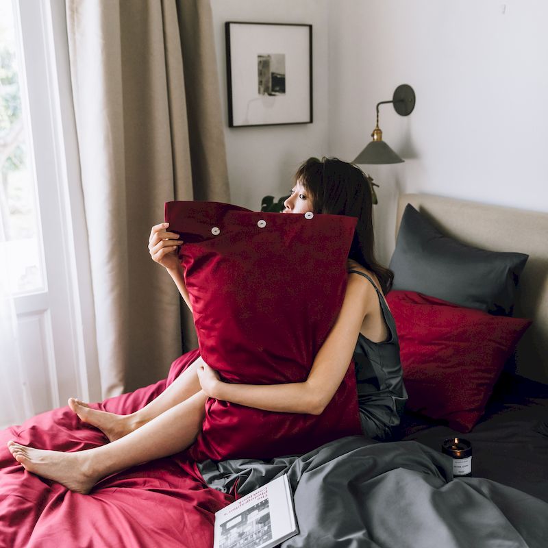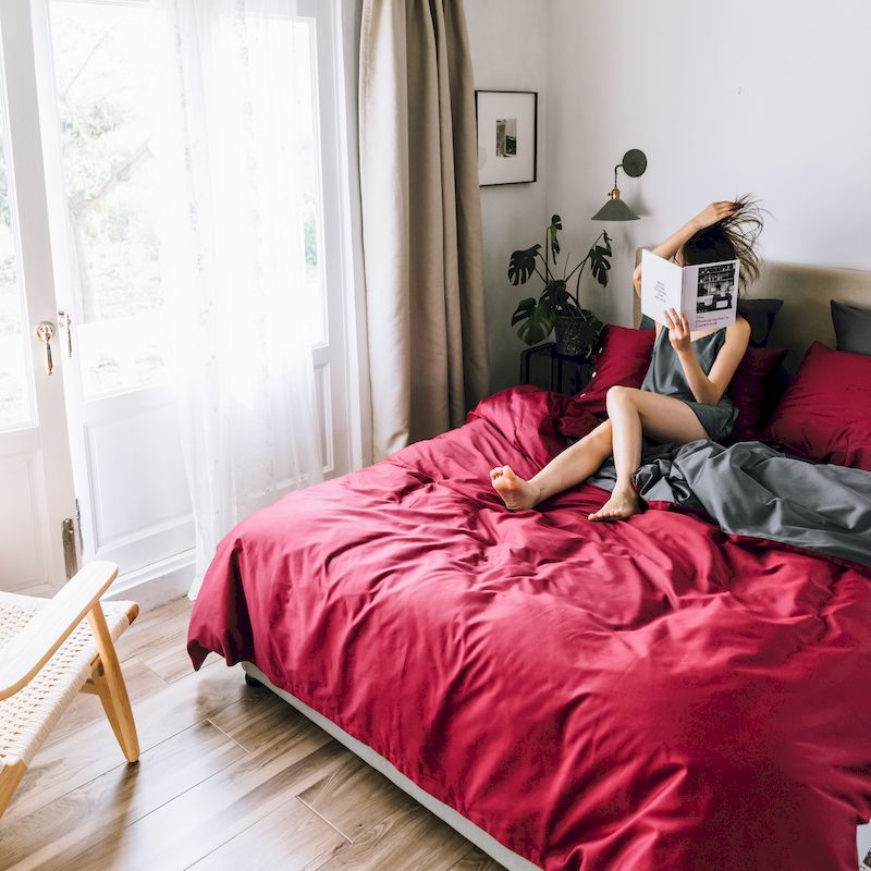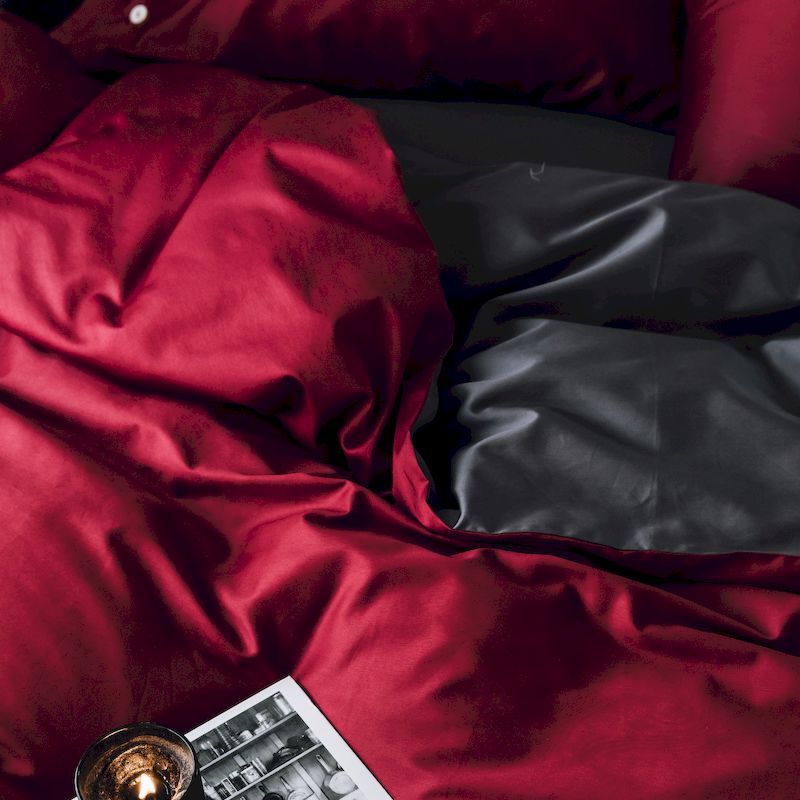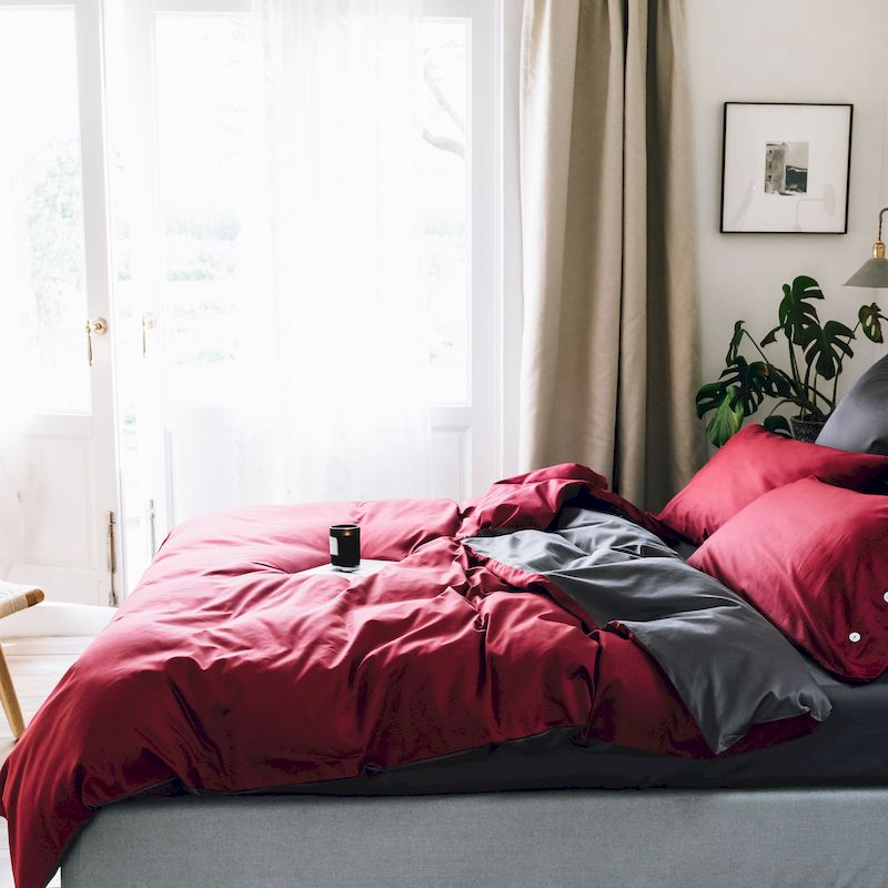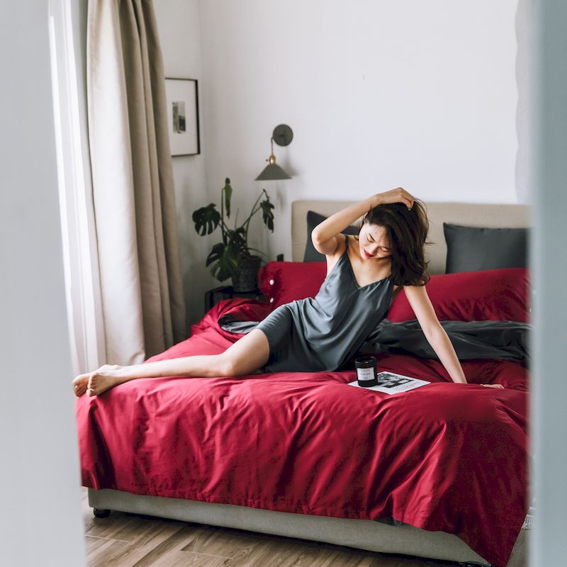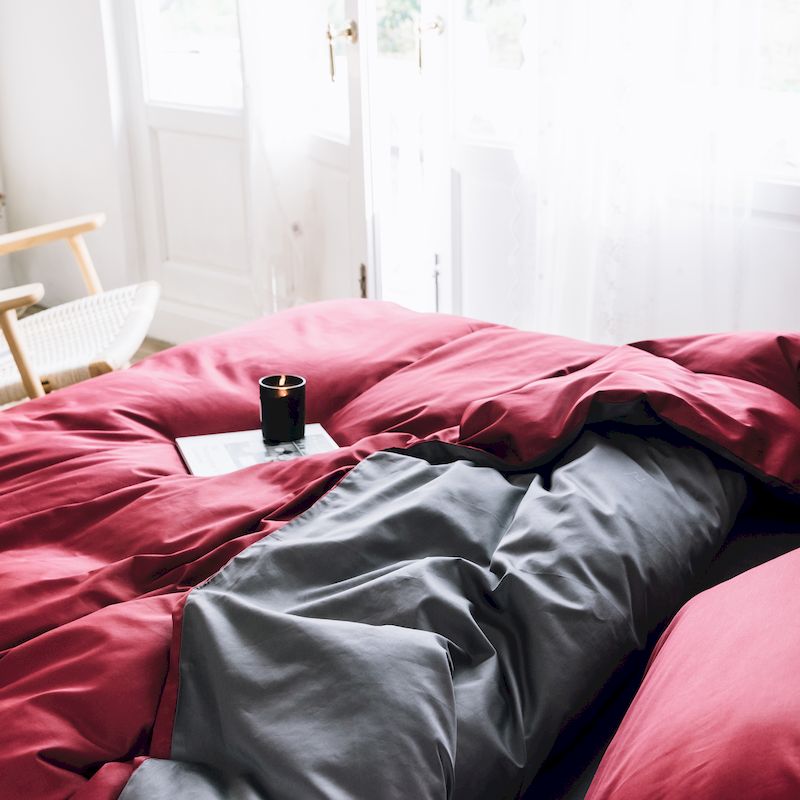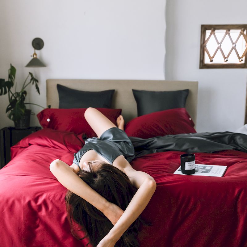 涞澳家纺 2019新款60长绒棉拼色一网红色四件套 红配黑