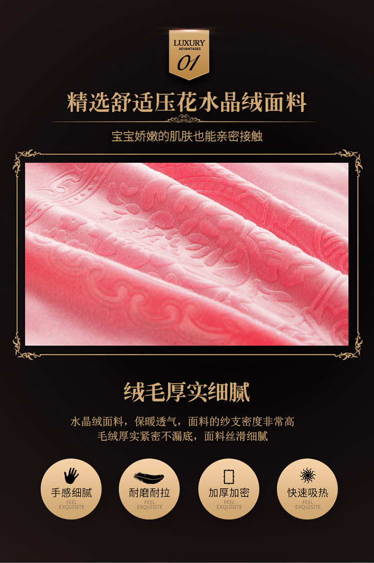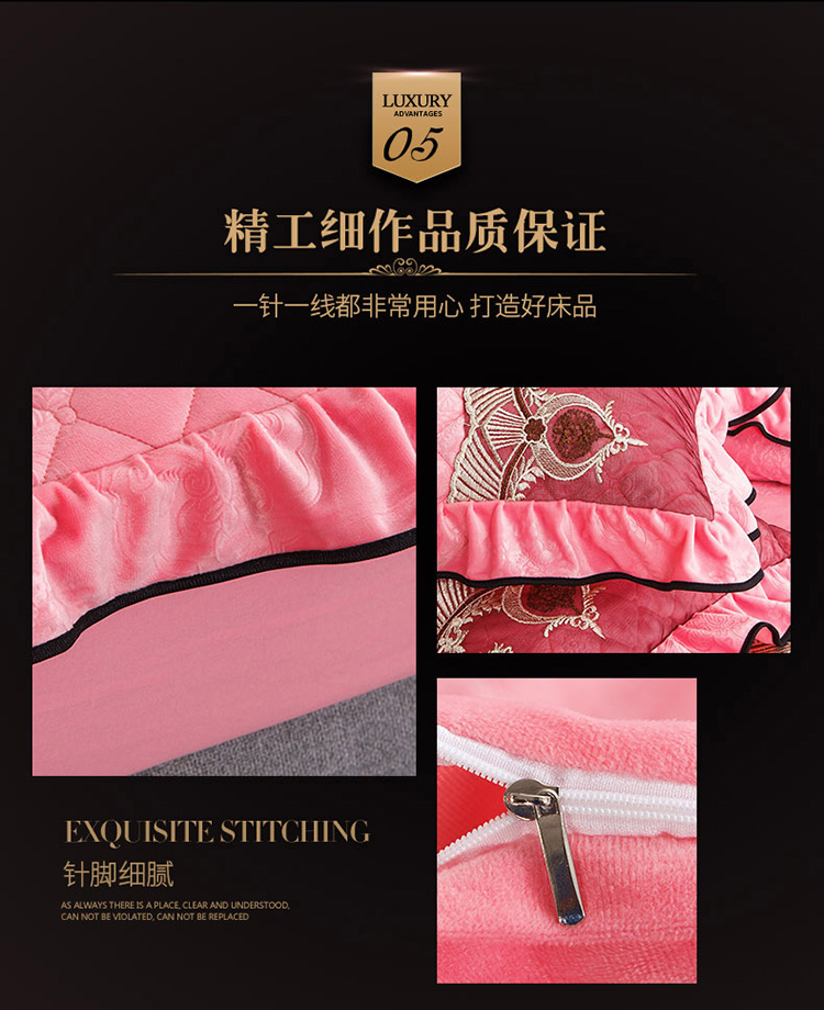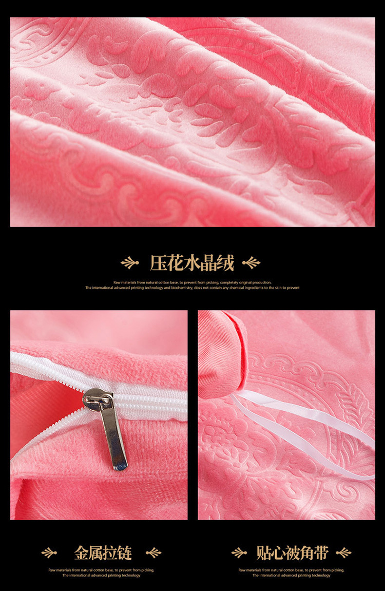 兴美佳水晶绒压花拉链款四件套-豪庭盛世粉玉