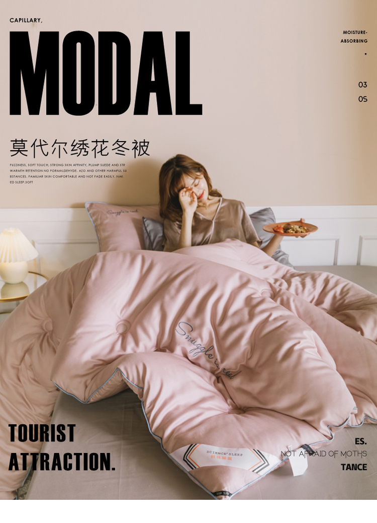 莱福仕 2022 莫代尔刺绣冬被系列 冬被浅豆沙