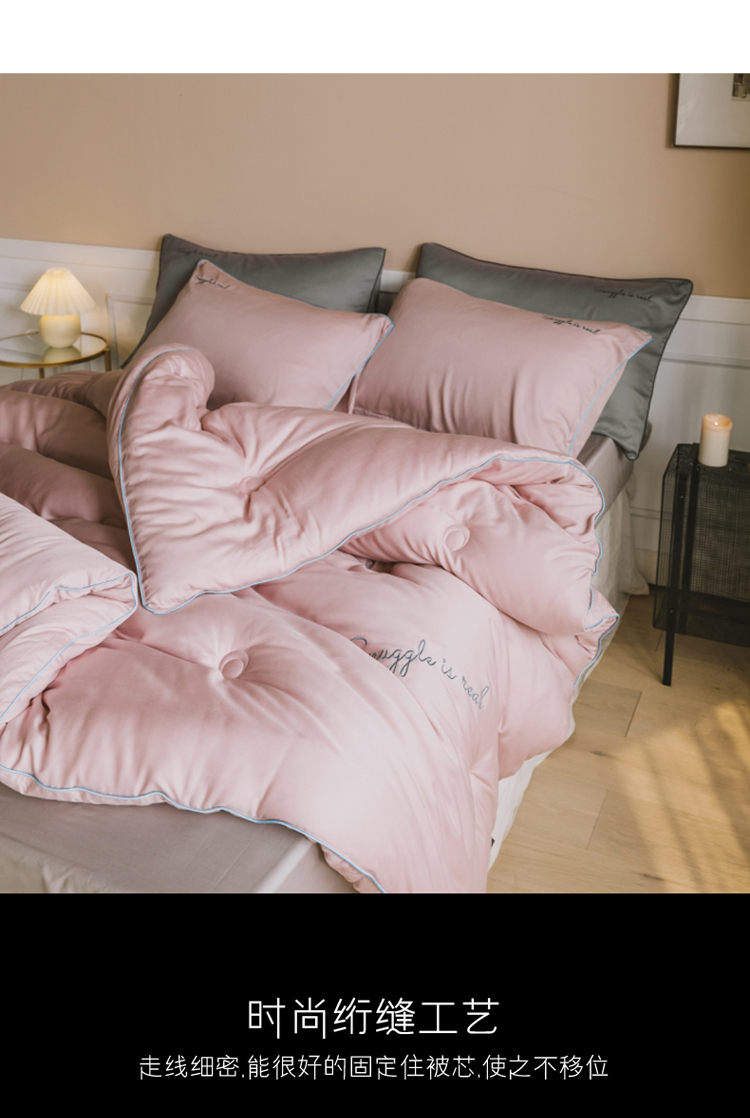 (总)莱福仕家纺 2025新款60支全棉磨毛10A中科抗菌被被子被芯,组合图仅供展示不可下单,富山白,蔷薇粉