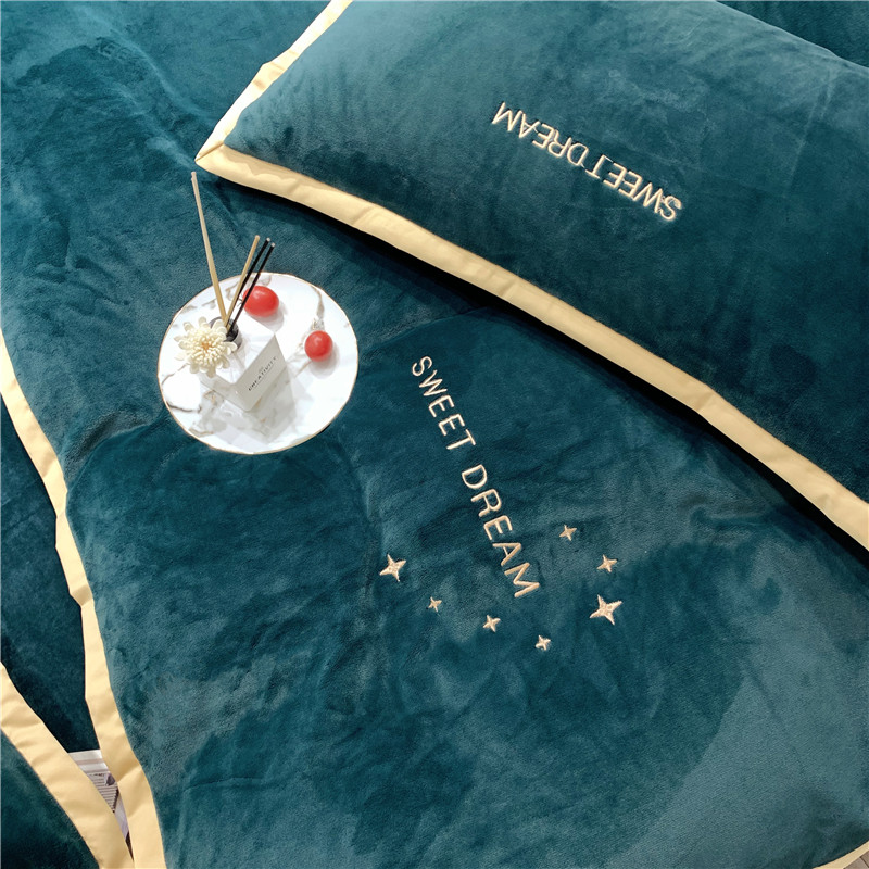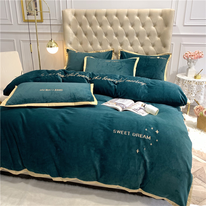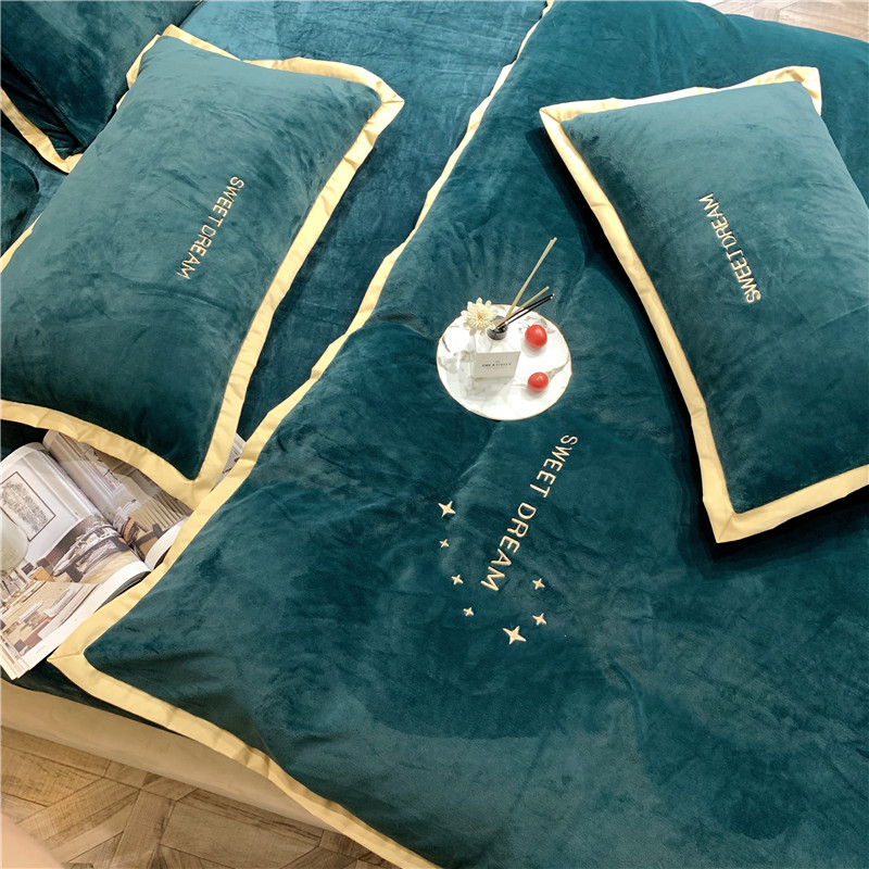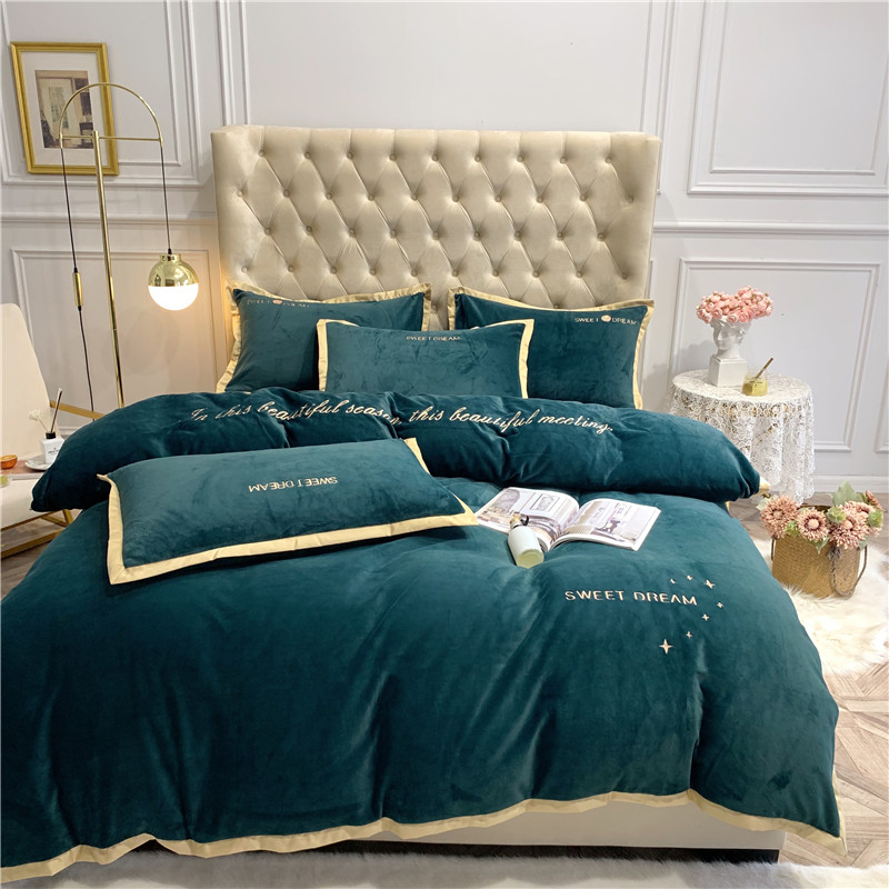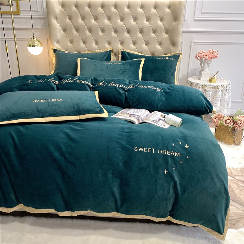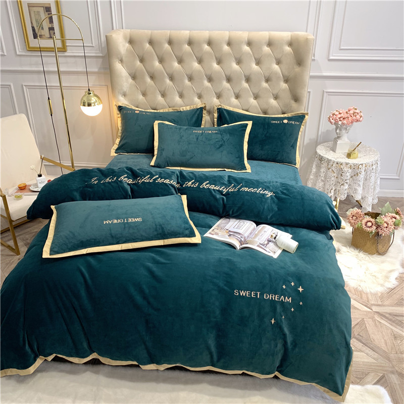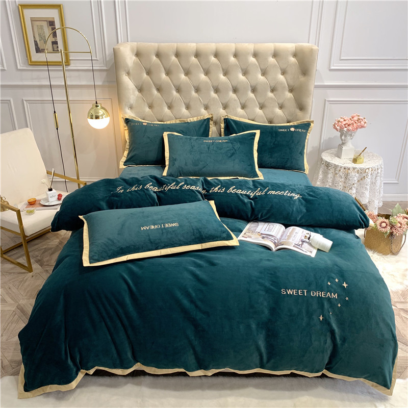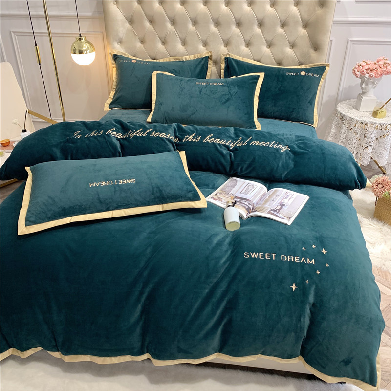 商品名称:馨蕊家居 2021新款牛奶绒四件套 暖阳相伴-墨绿