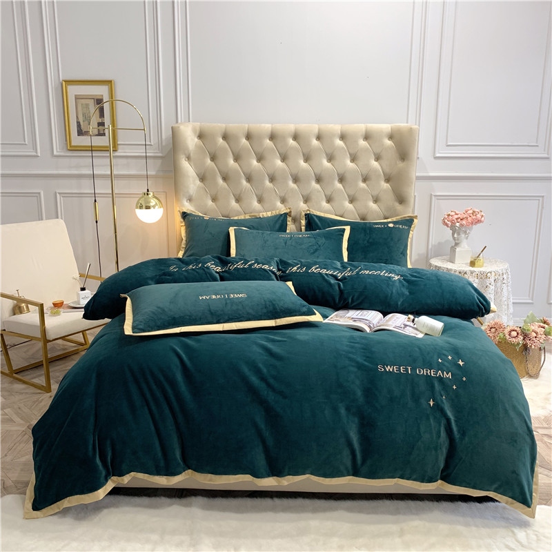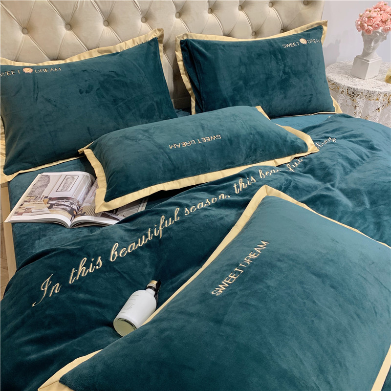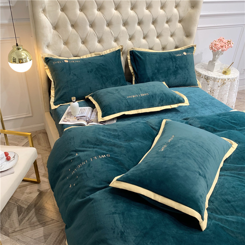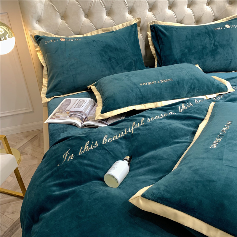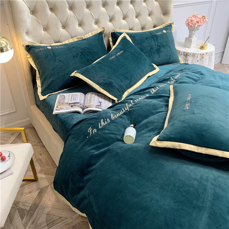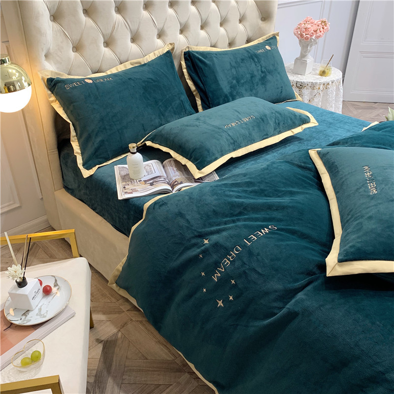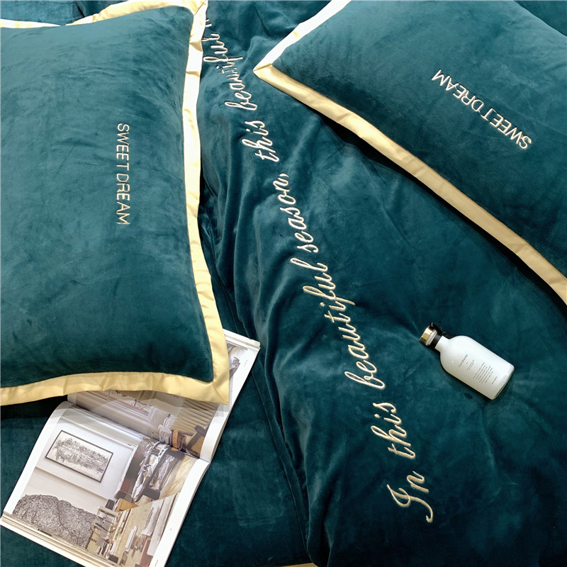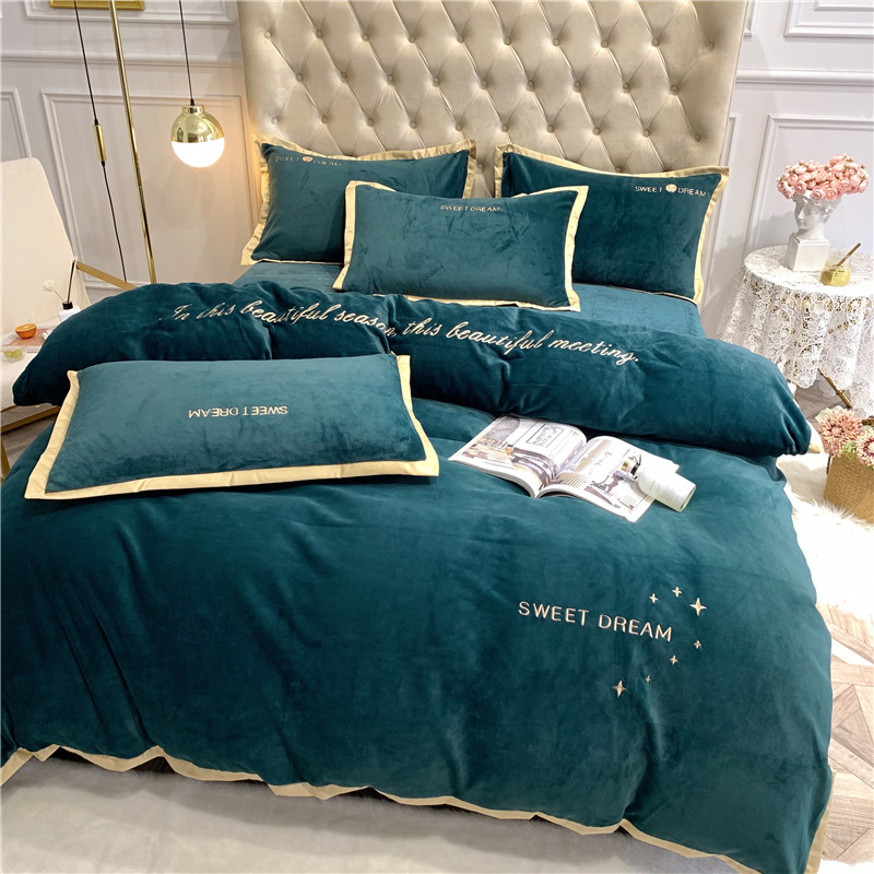 商品名称:馨蕊家居 2021新款牛奶绒四件套 暖阳相伴-墨绿