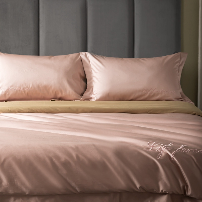 商品名称:太古汇 2020新款纯色双拼绣花四件套 萝莉粉