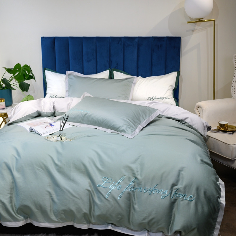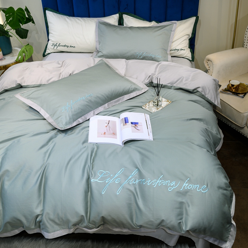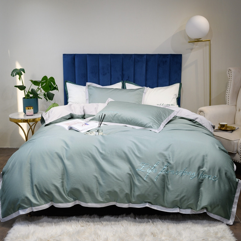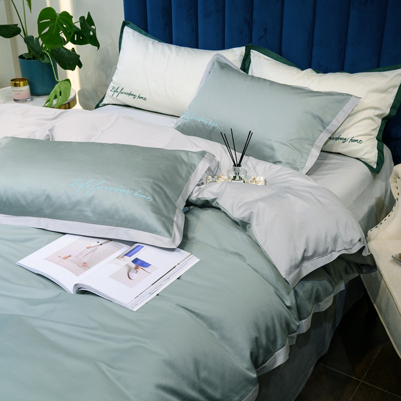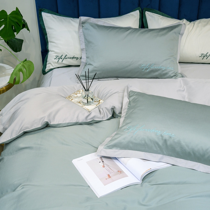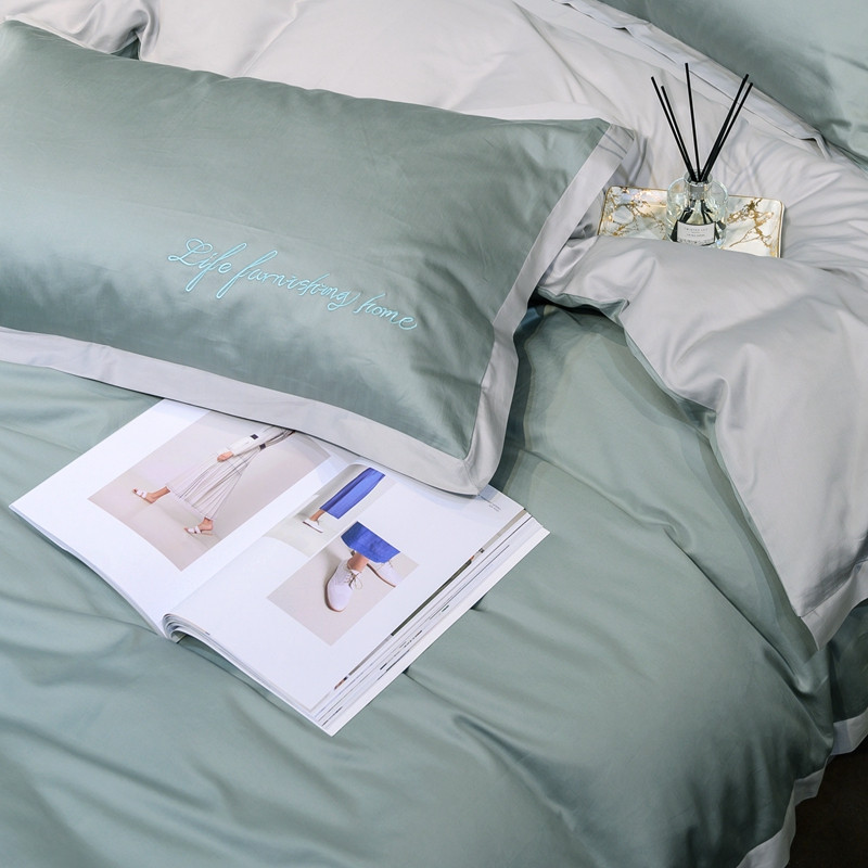商品名称:太古汇 2020新款60支贡缎长绒棉双拼四件套实拍图薄荷绿