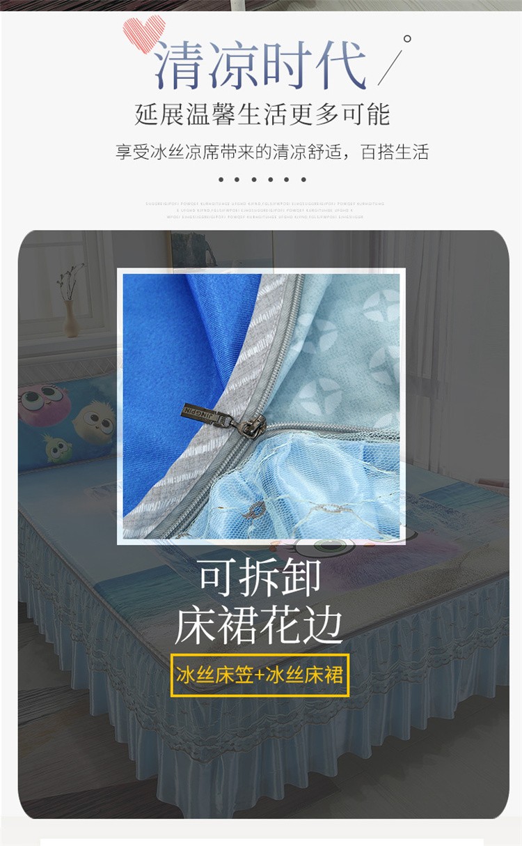 青竹苑2021新款冰丝凉席可拆卸床裙式冰丝床笠软席 吉祥三宝
