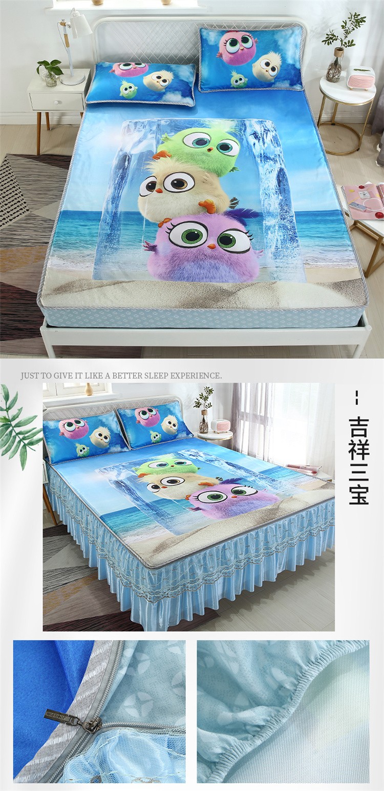 商品名称:青竹苑2021新款冰丝凉席可拆卸床裙式冰丝床笠软席 吉祥三宝