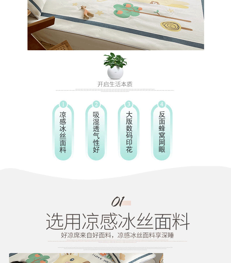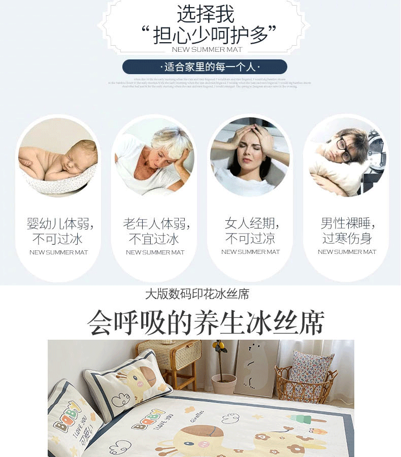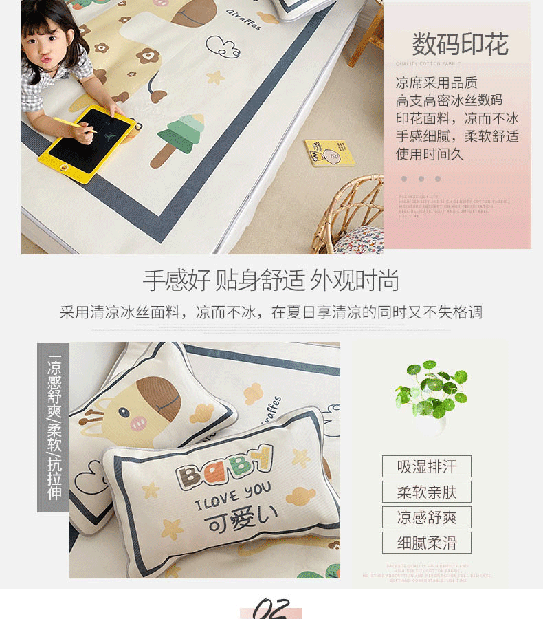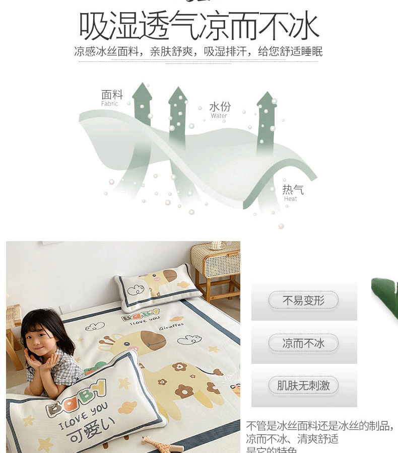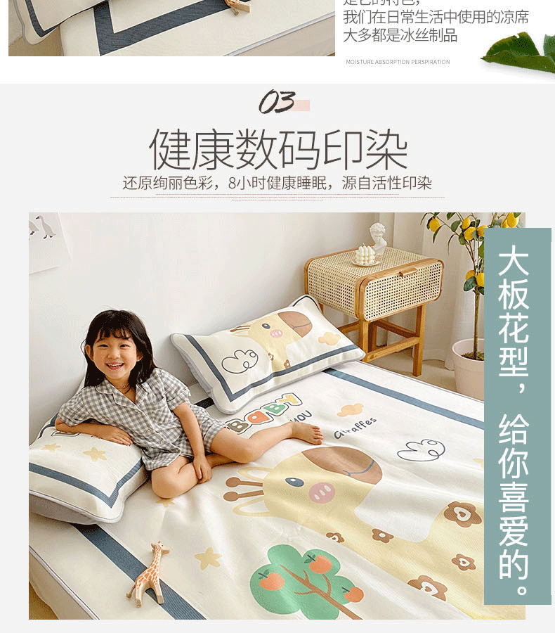 商品名称:川悦生活 2021直播供货新款大版冰丝凉席 软萌长颈鹿