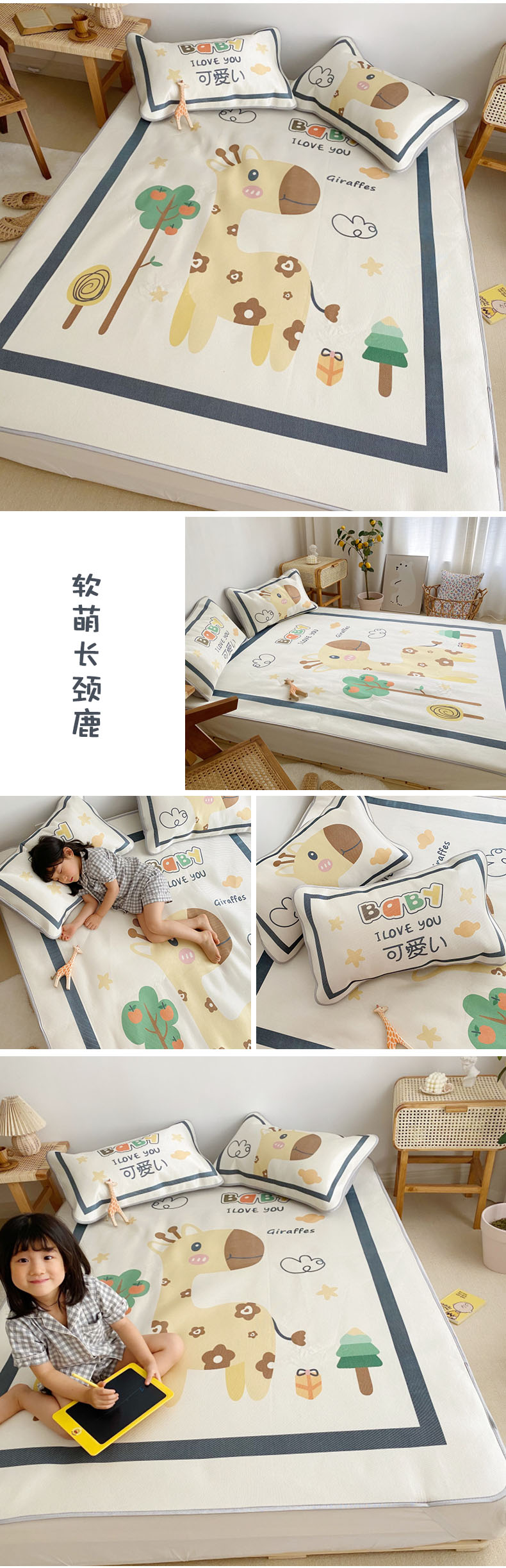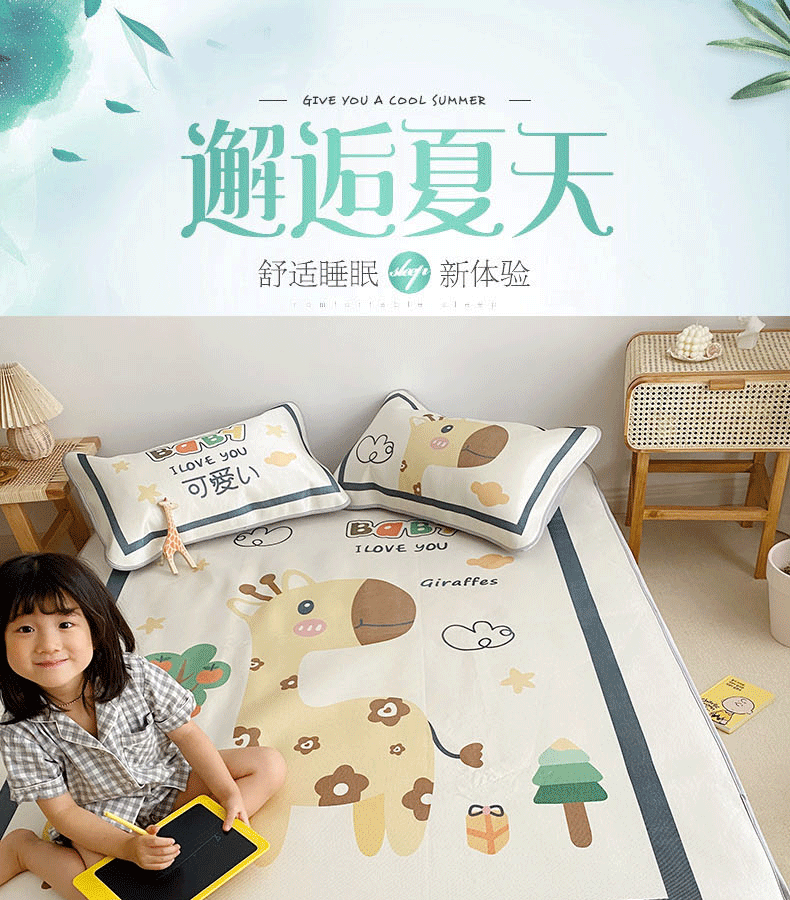 川悦生活 2021直播供货新款大版冰丝凉席 软萌长颈鹿