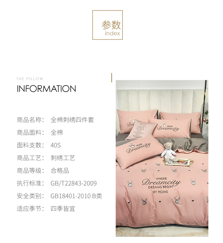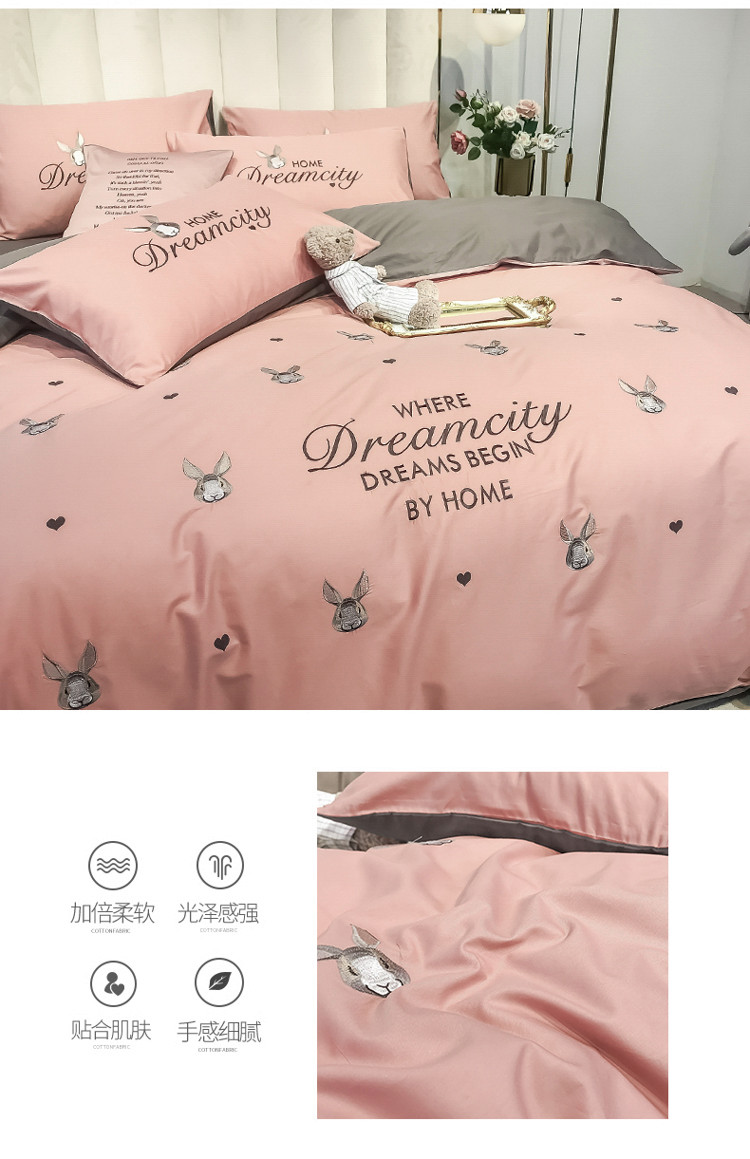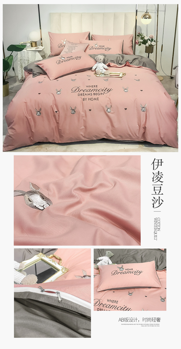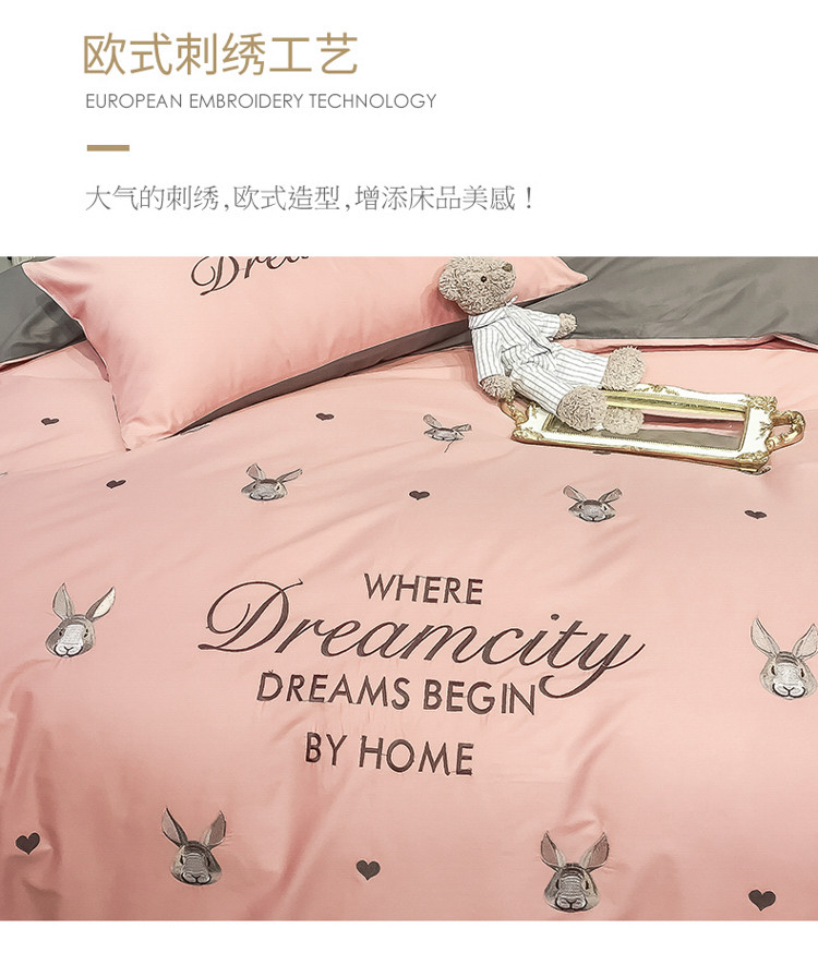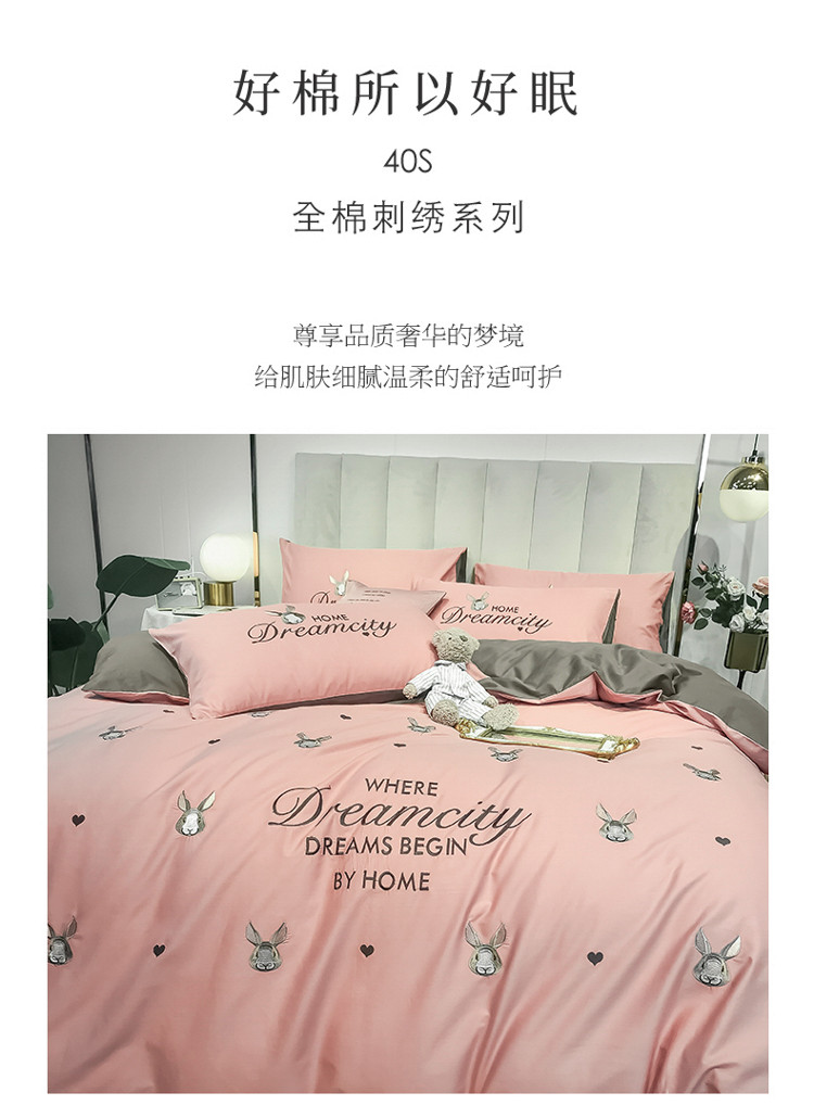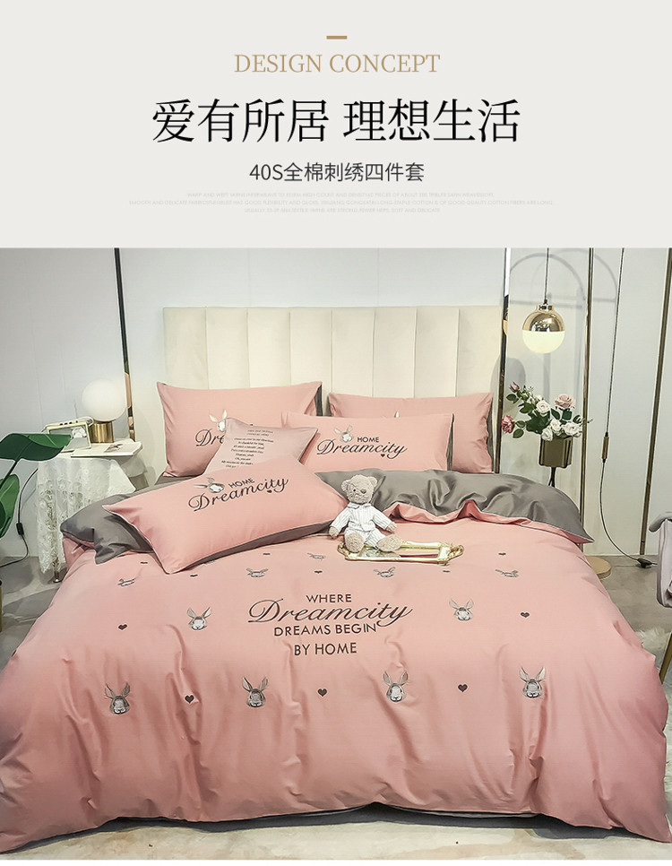当前位置: 91家纺网 > 商品网购 > 床品套件 > 四件套 > 全棉普通四件套 > 眠帛家居 2020全棉绣花小清新四件套 伊凌豆沙