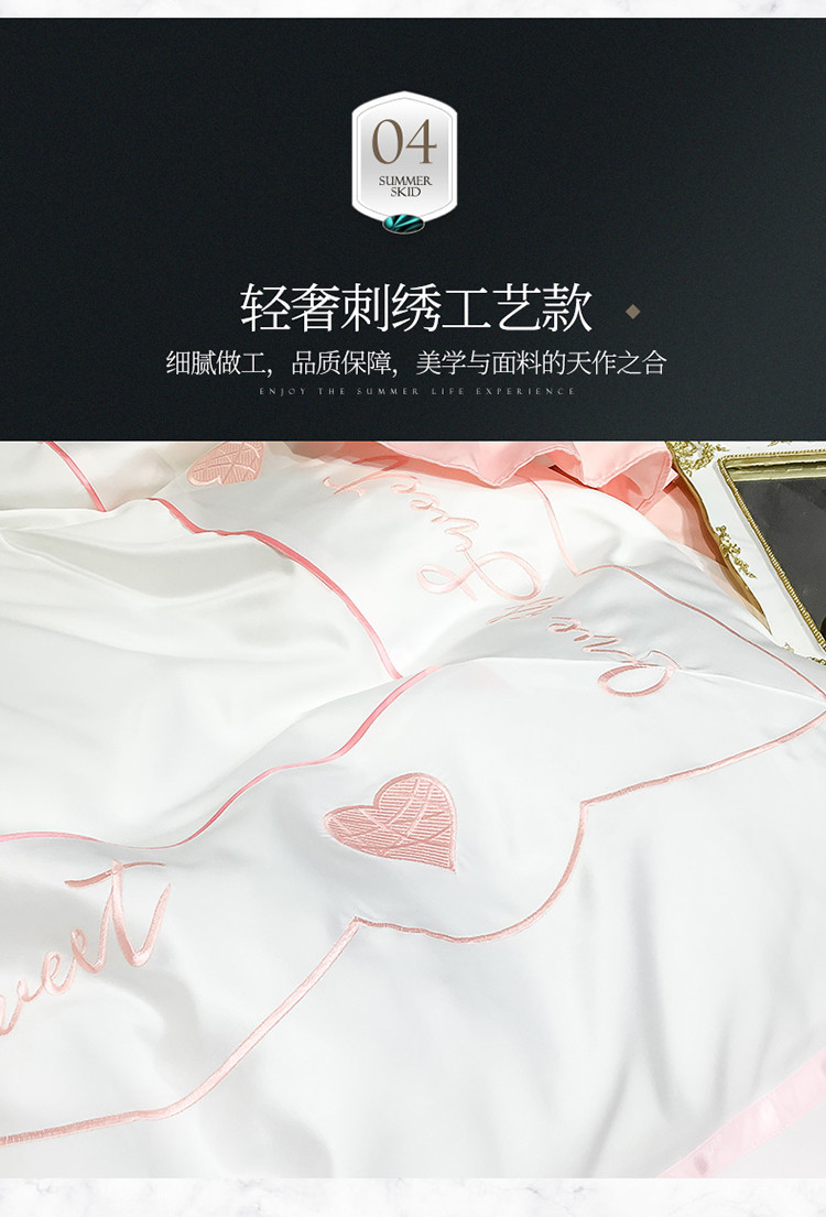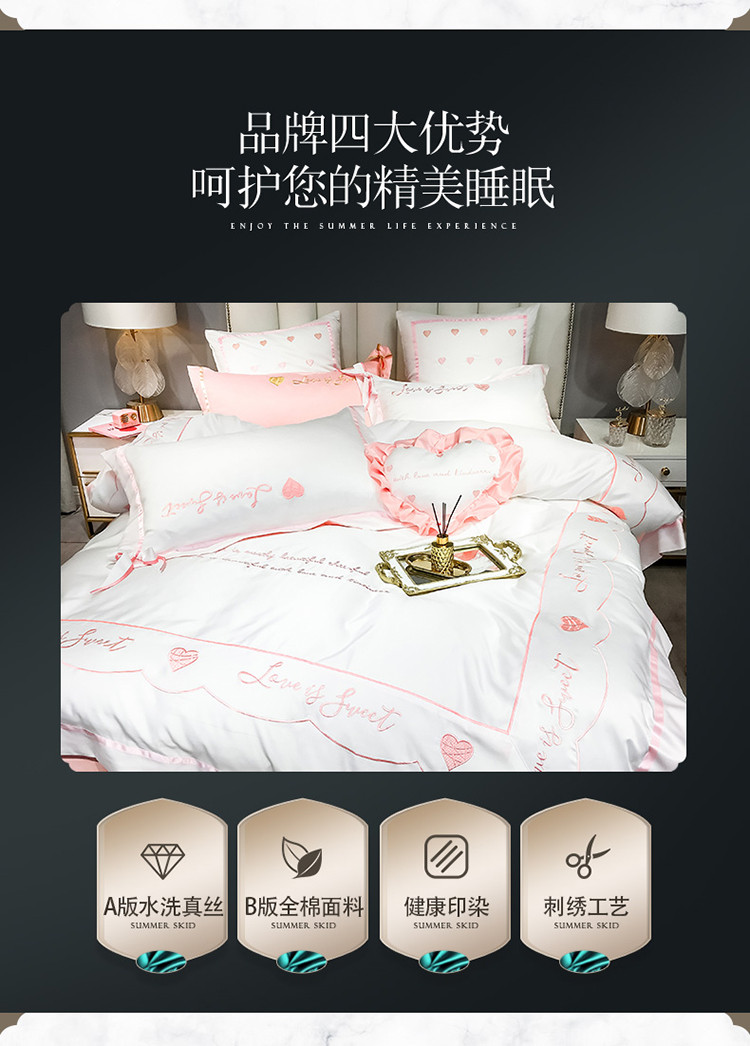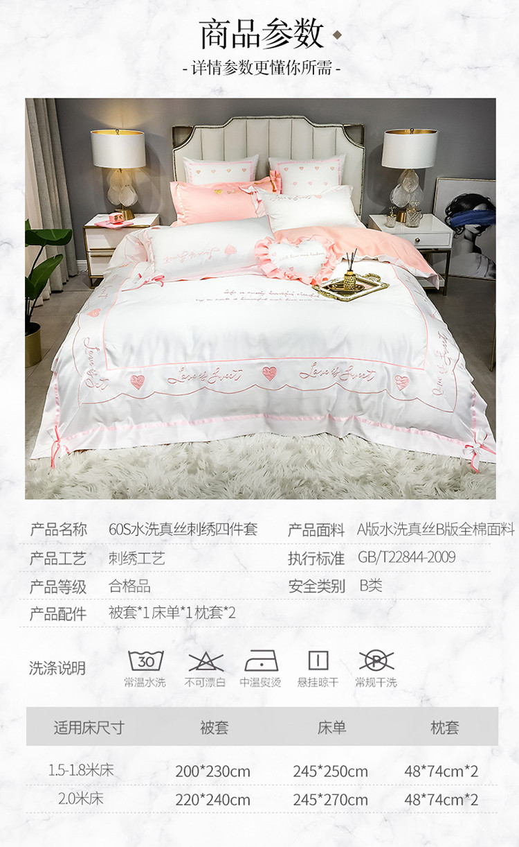 商品名称:眠帛家居 2020新款60水洗真丝刺绣心心相印四件套 白色