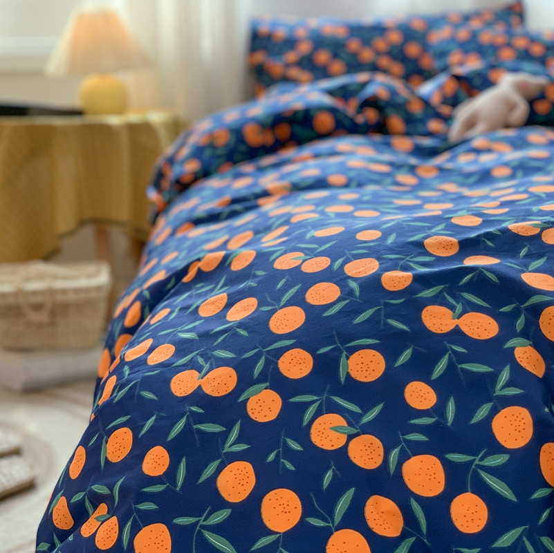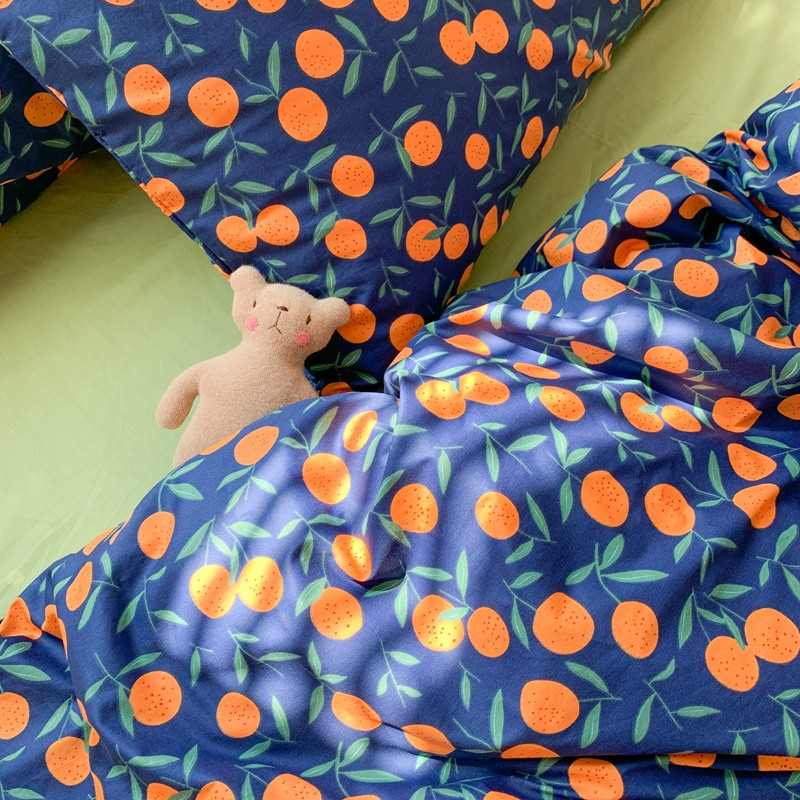 当前位置: 91家纺网 > 商品网购 > 床品套件 > 四件套 > 全棉普通四件套 > 时年 2020新款40s全棉小可爱系列四件套 橘子(蓝)