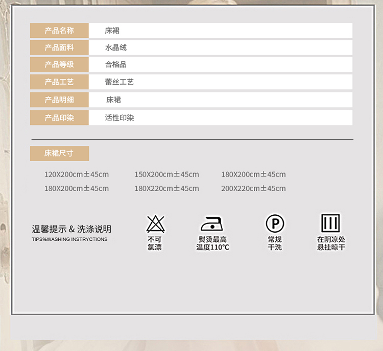 商品名称:(总)瑞宝 2025新款水晶绒夹棉米拉花园系列单品床裙