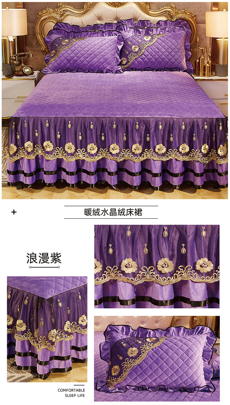 (总)瑞宝 2025新款雕花牛奶绒夹棉床裙三件套-花有约,花有约-粉玉,花有约-青柠绿,花有约-奶油白,花有约-蔚蓝,花有约-卡其,花有约-梦幻紫