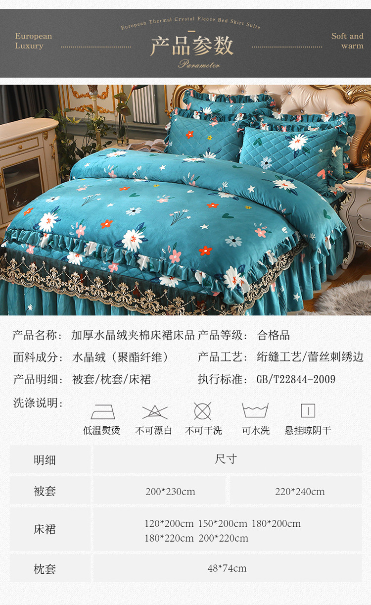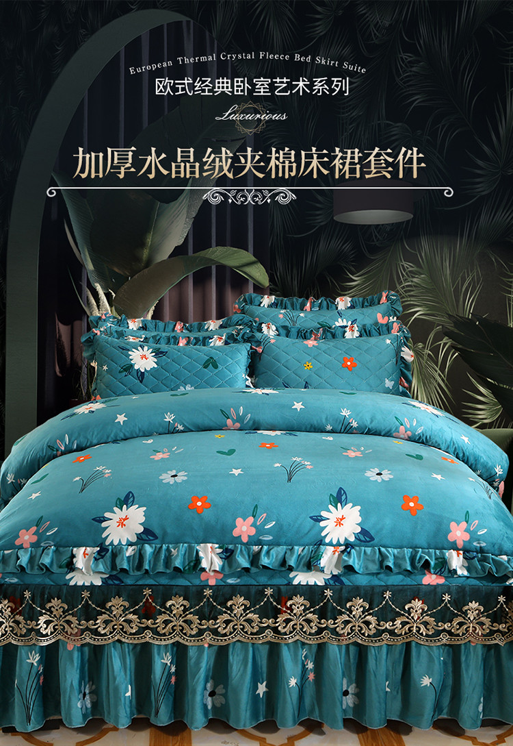 当前位置: 91家纺网 > 商品网购 > 床品套件 > 四件套 > 水晶绒四件套 > 宜凡家纺 2021新款夹棉水晶绒床裙四件套 初心