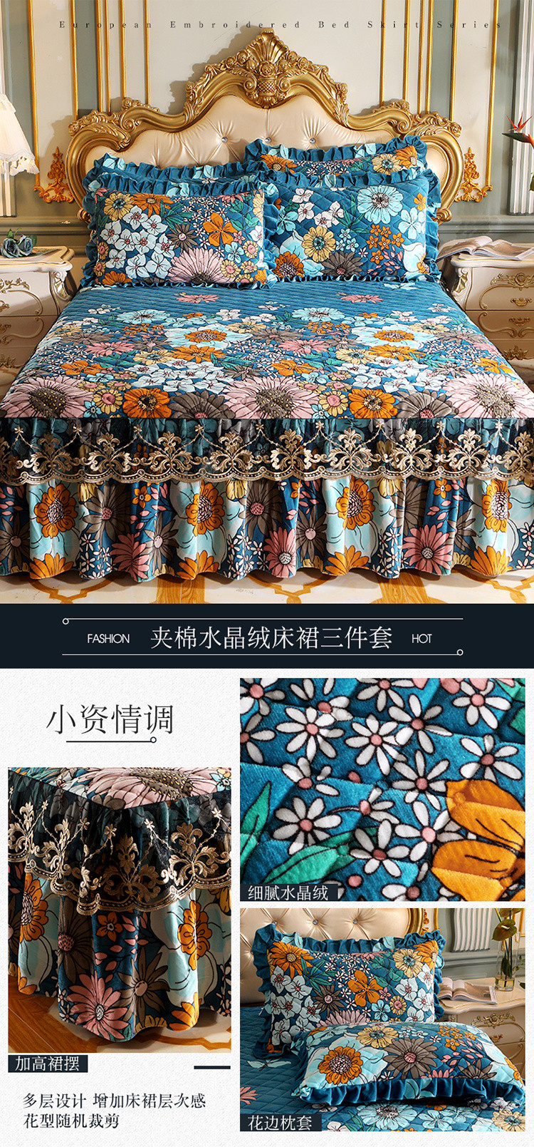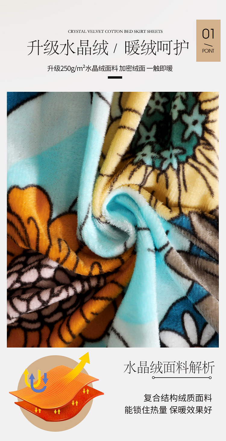 商品名称:宜凡家纺 2021新款夹棉水晶绒单品床裙 小资情调