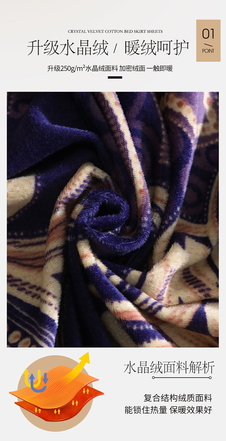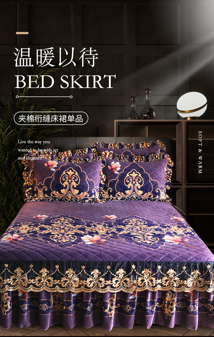 宜凡家纺 2021新款夹棉水晶绒单品床裙 绝代佳人紫