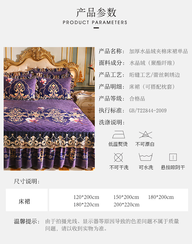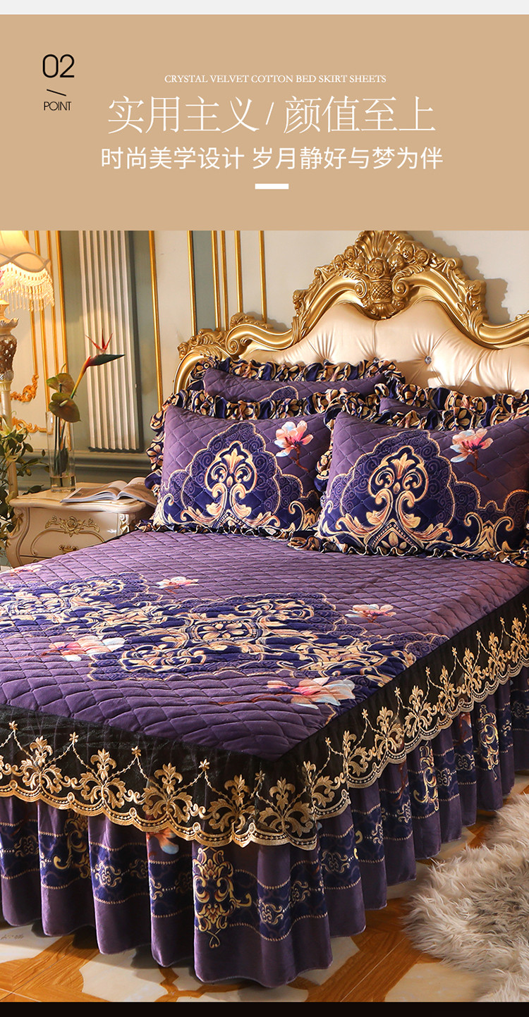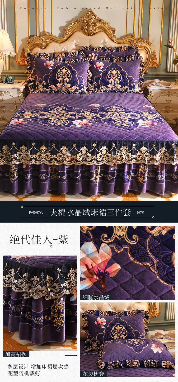 商品名称:宜凡家纺 2021新款夹棉水晶绒单品床裙 绝代佳人紫