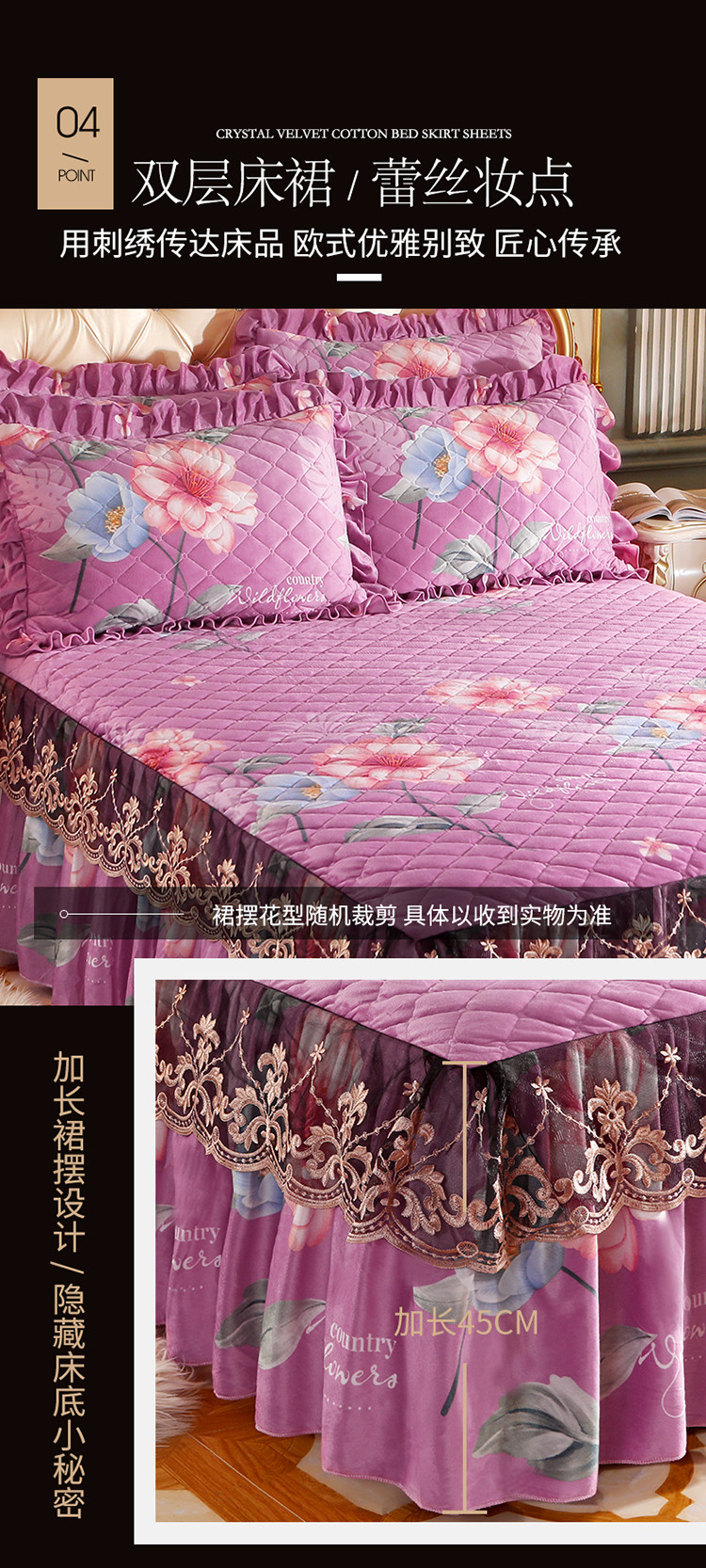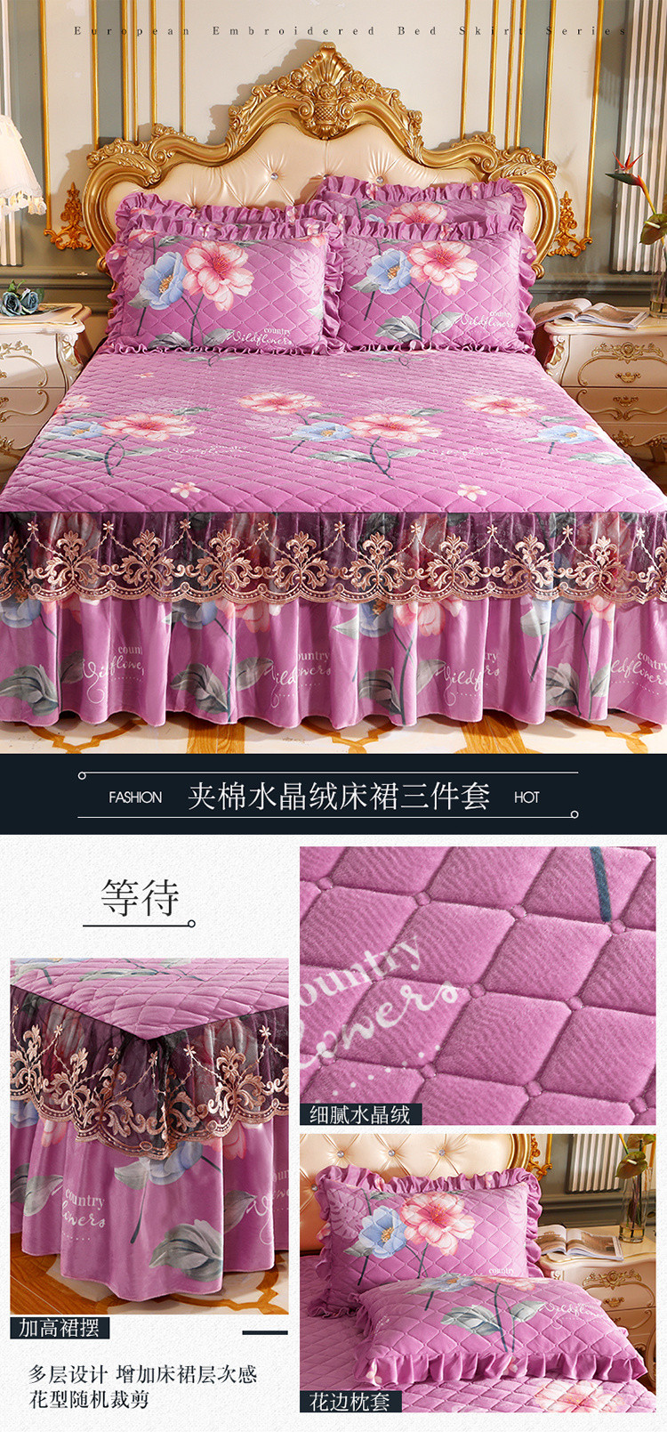 商品名称:宜凡家纺 2021新款夹棉水晶绒单品床裙 等待