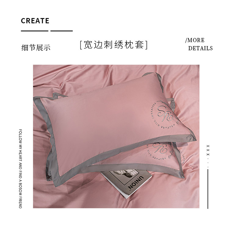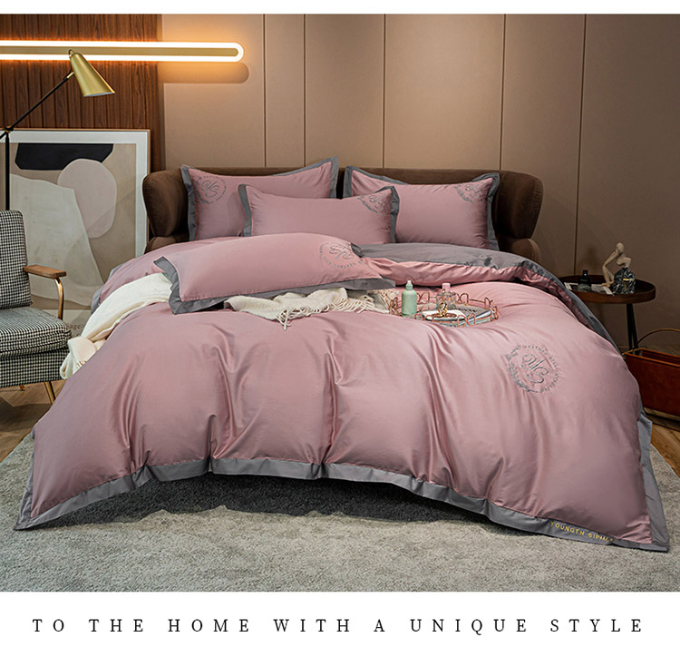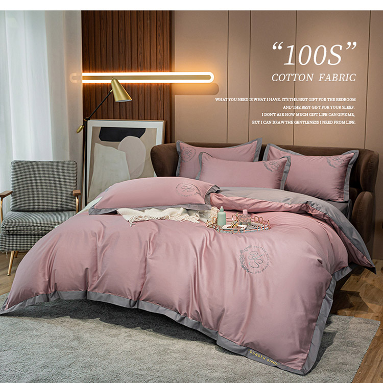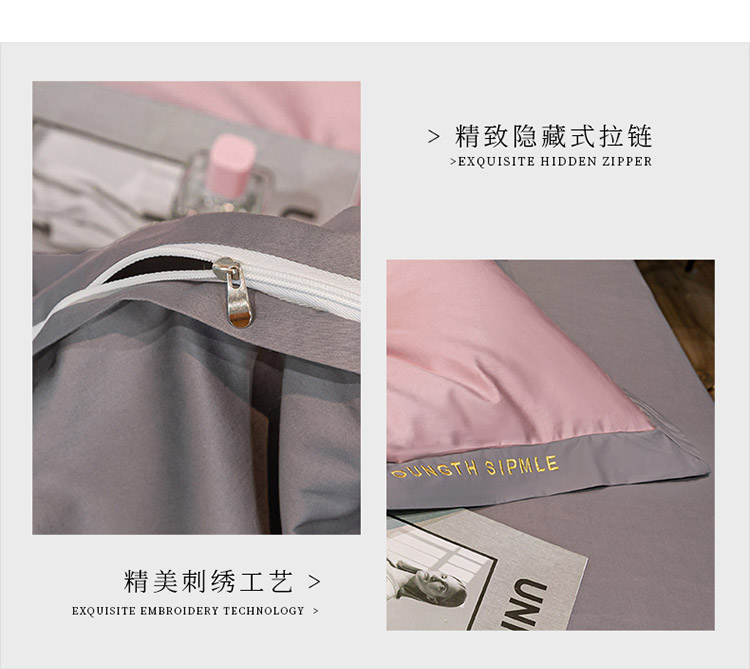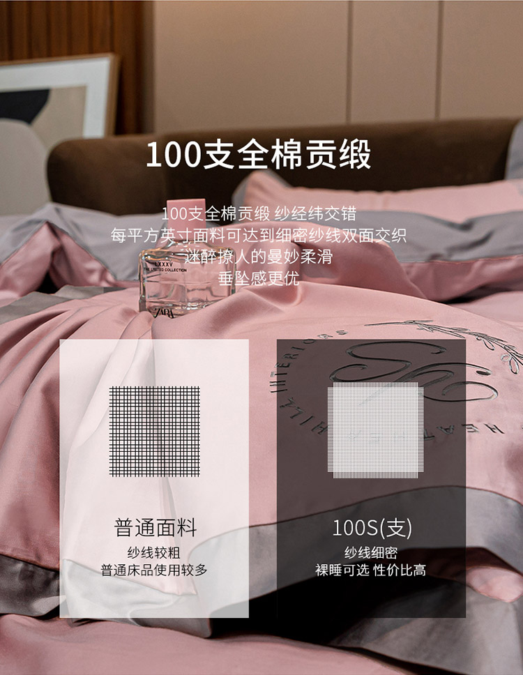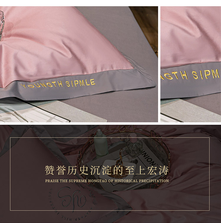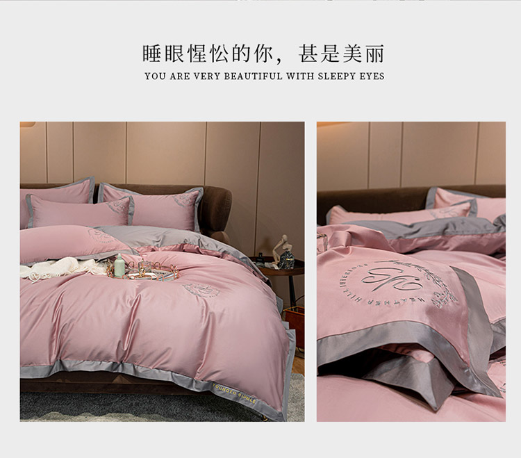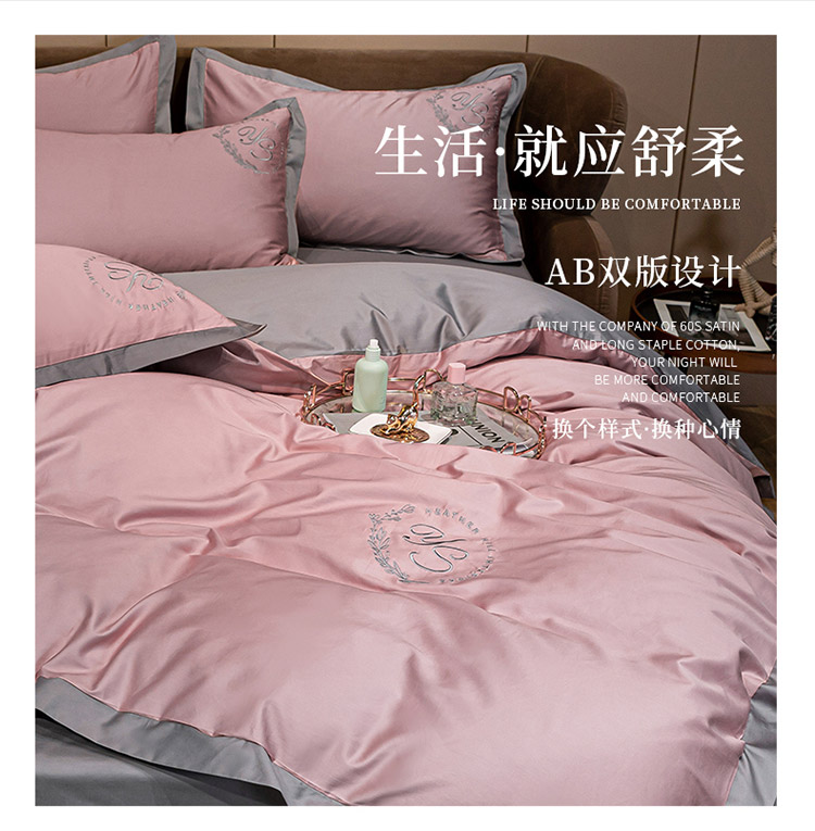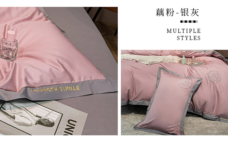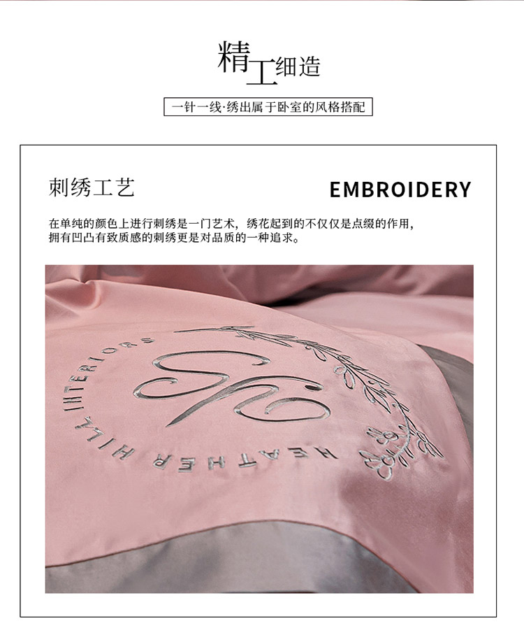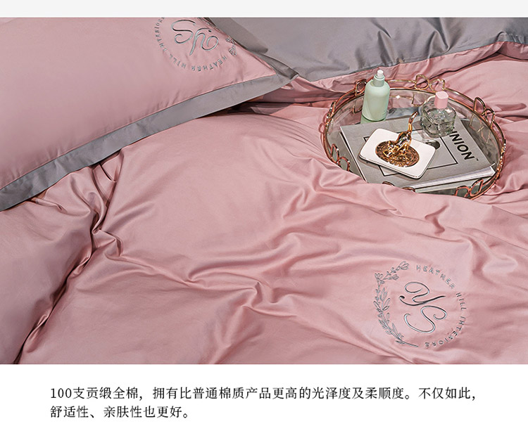 商品名称:爱缦2020新款100S长绒棉澳棉刺绣简系列四件套 藕粉-银灰