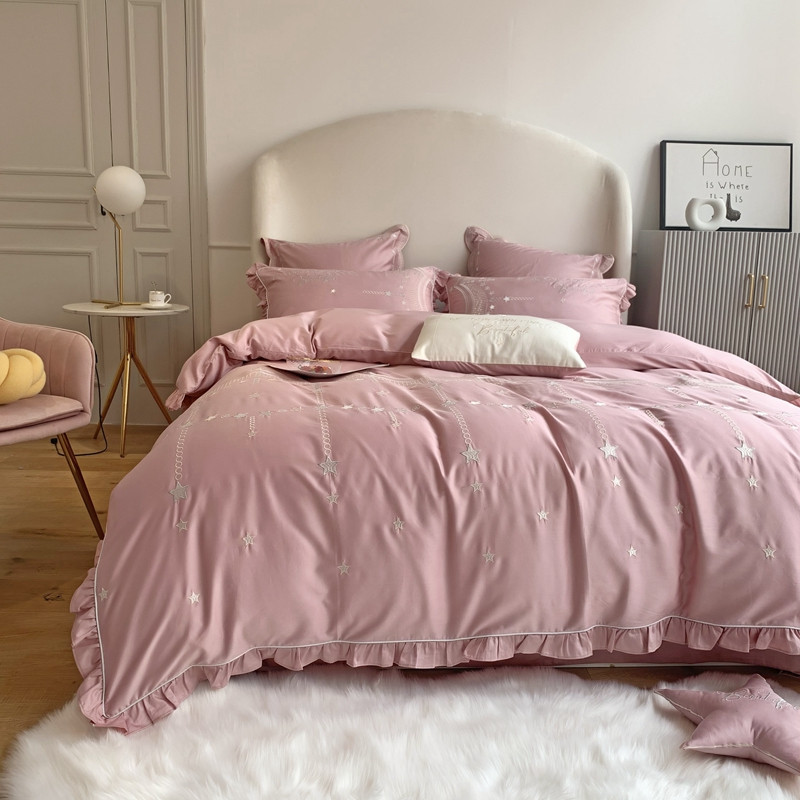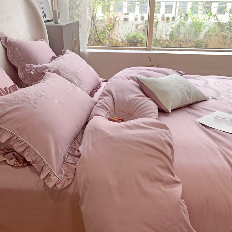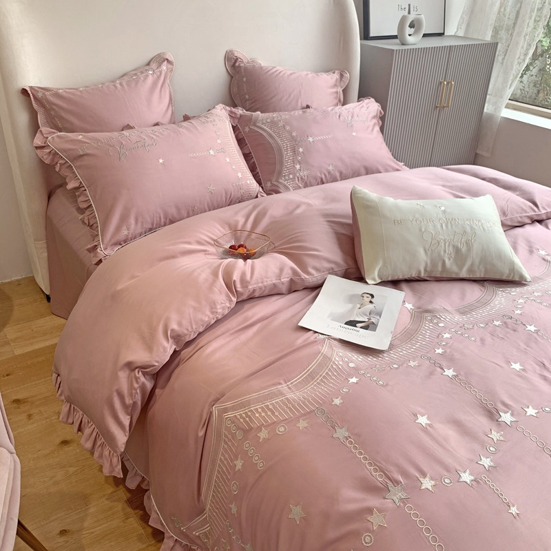 商品名称:柚子 新款60s长绒棉绣花工艺款四件套(棚拍)星梦缘藕粉