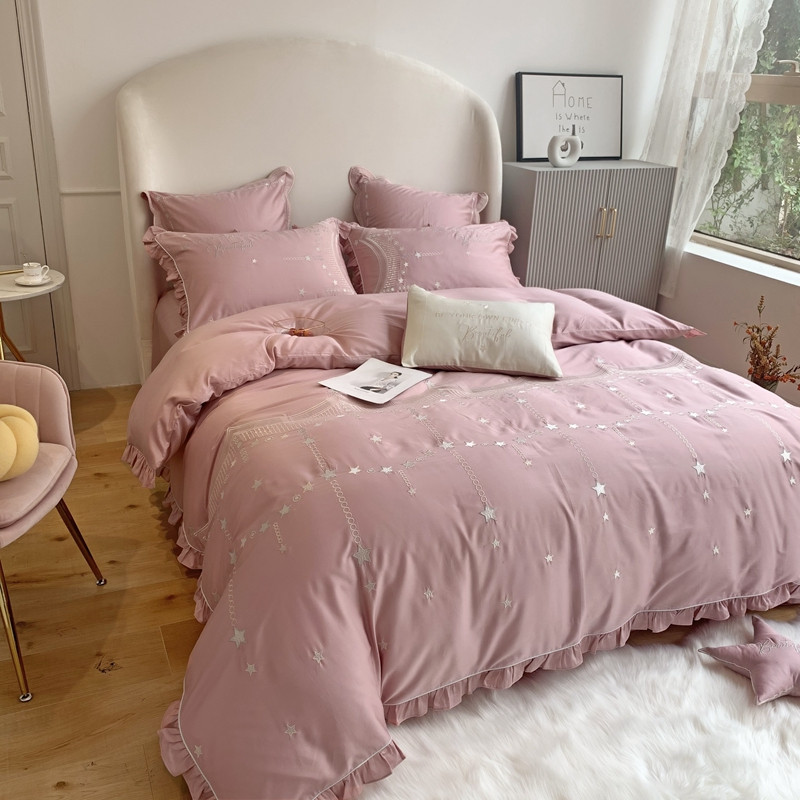 柚子 新款60s长绒棉绣花工艺款四件套(棚拍)星梦缘藕粉