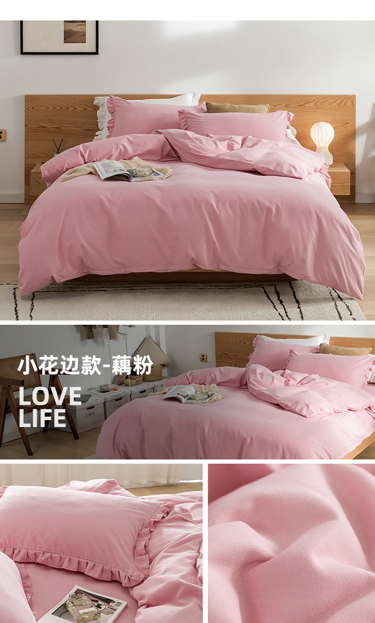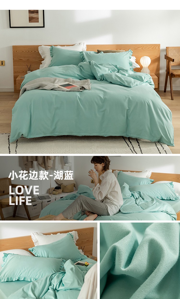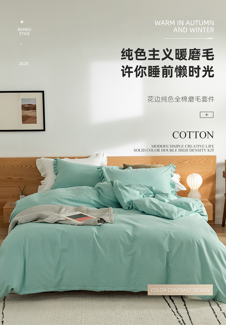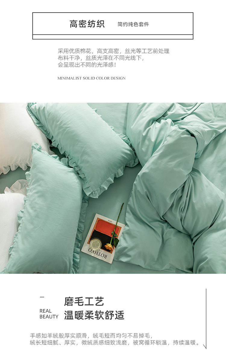 (总)窝米 2020新款40s纯色磨毛四件套花边系列