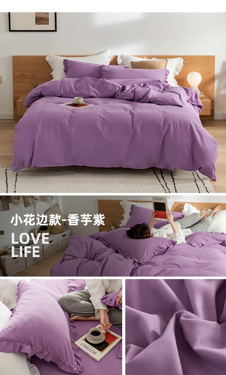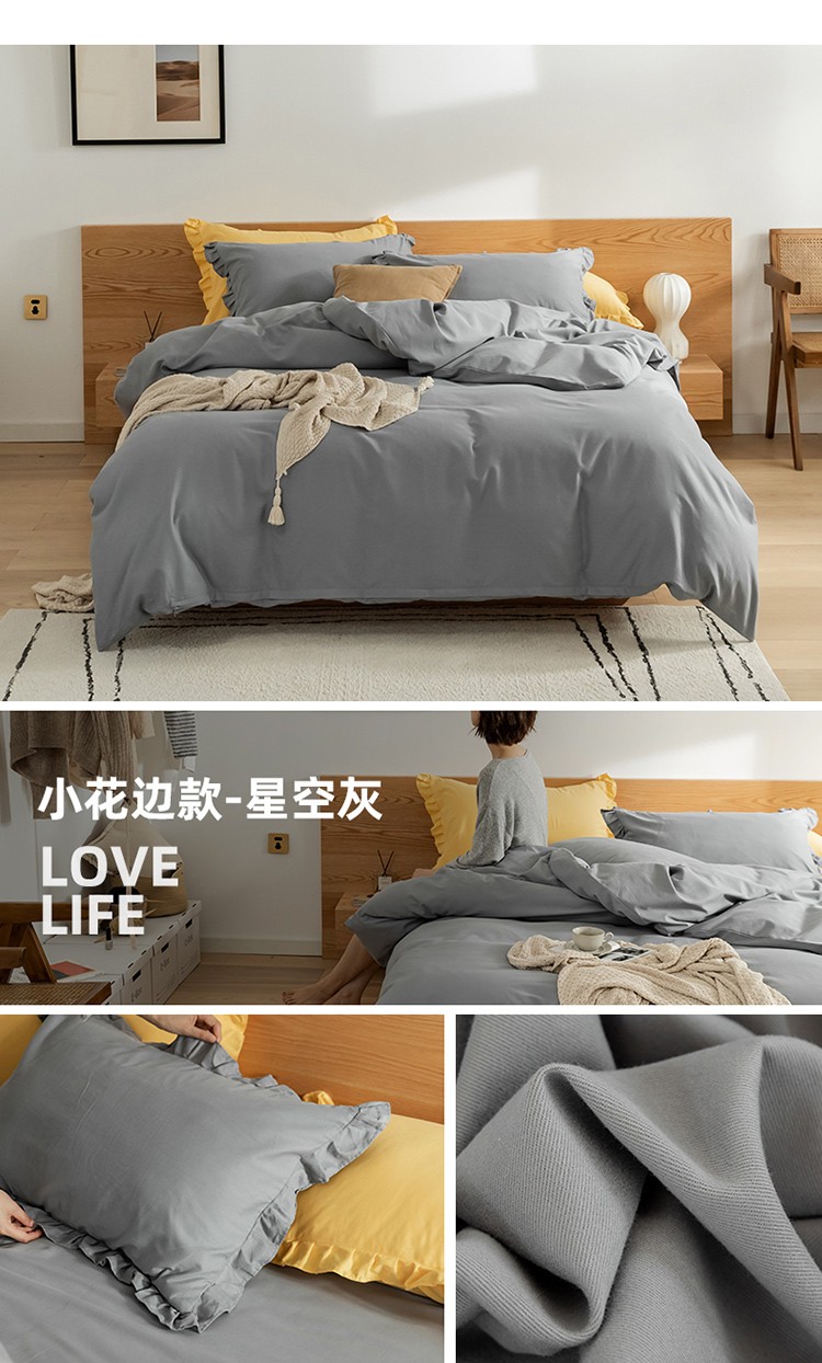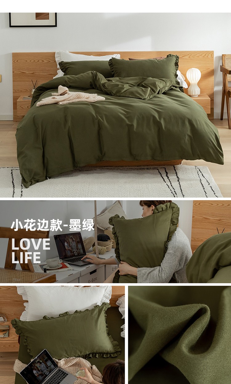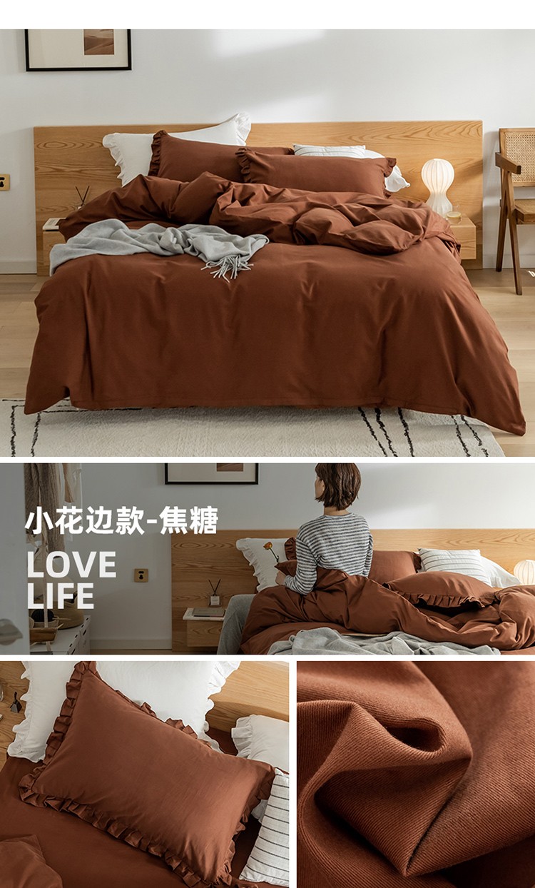 (总)窝米 2020新款40s纯色磨毛四件套花边系列