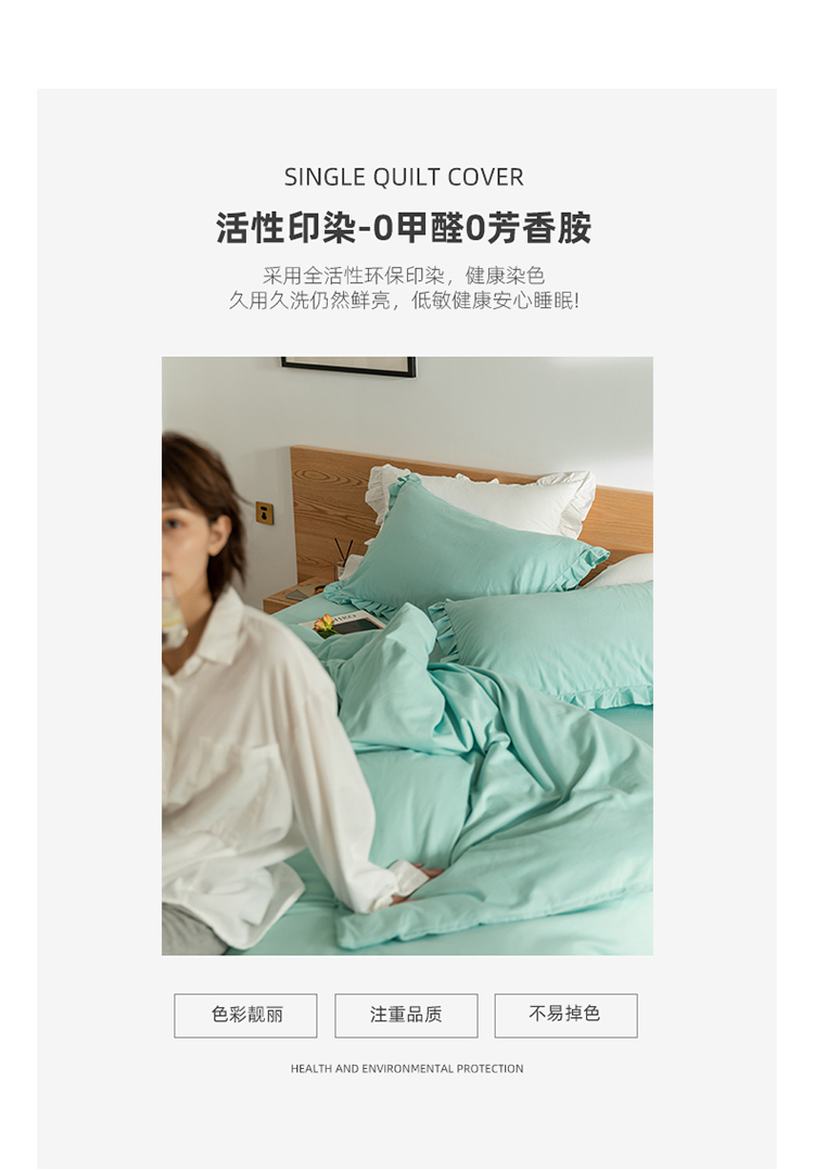 (总)窝米 2022夏季新品素色双拼水洗棉四件套,艾青双拼,冰莓粉双拼,绿云双拼,抹茶绿双拼,少女粉双拼,神仙紫双拼,雾霾蓝双拼,芝士双拼