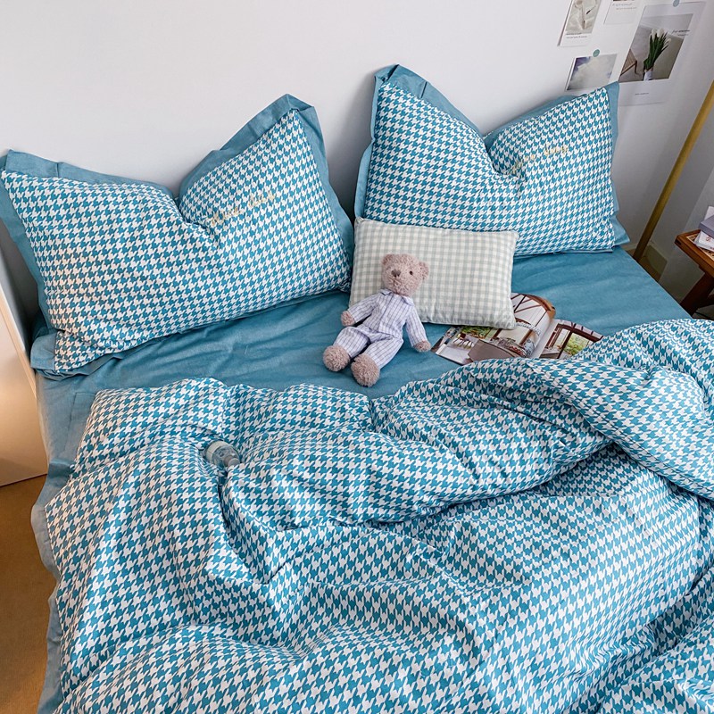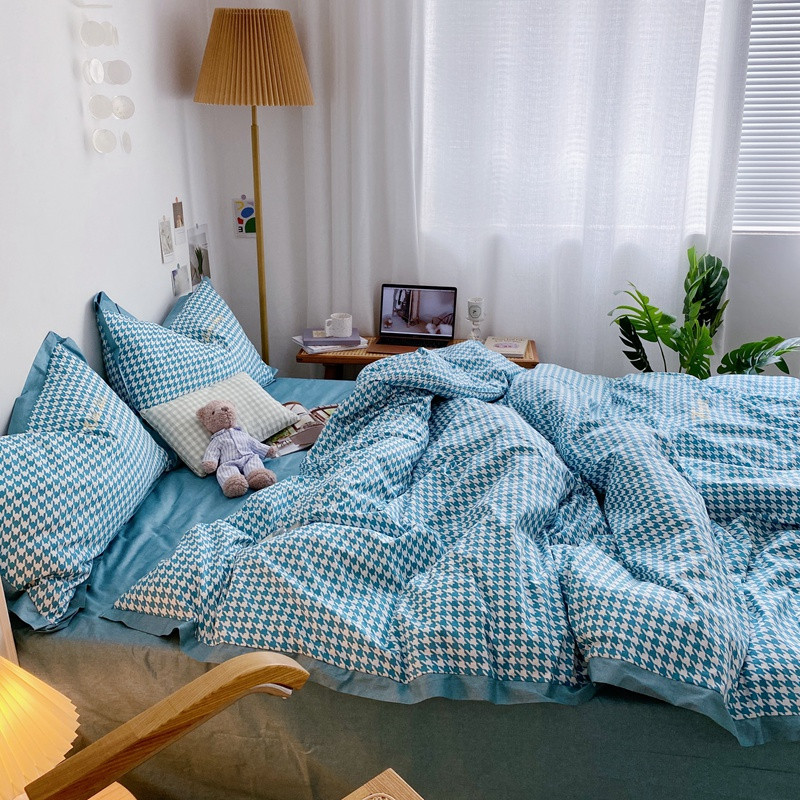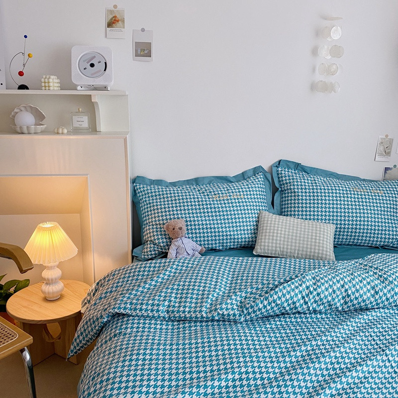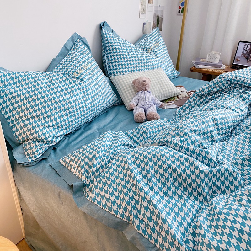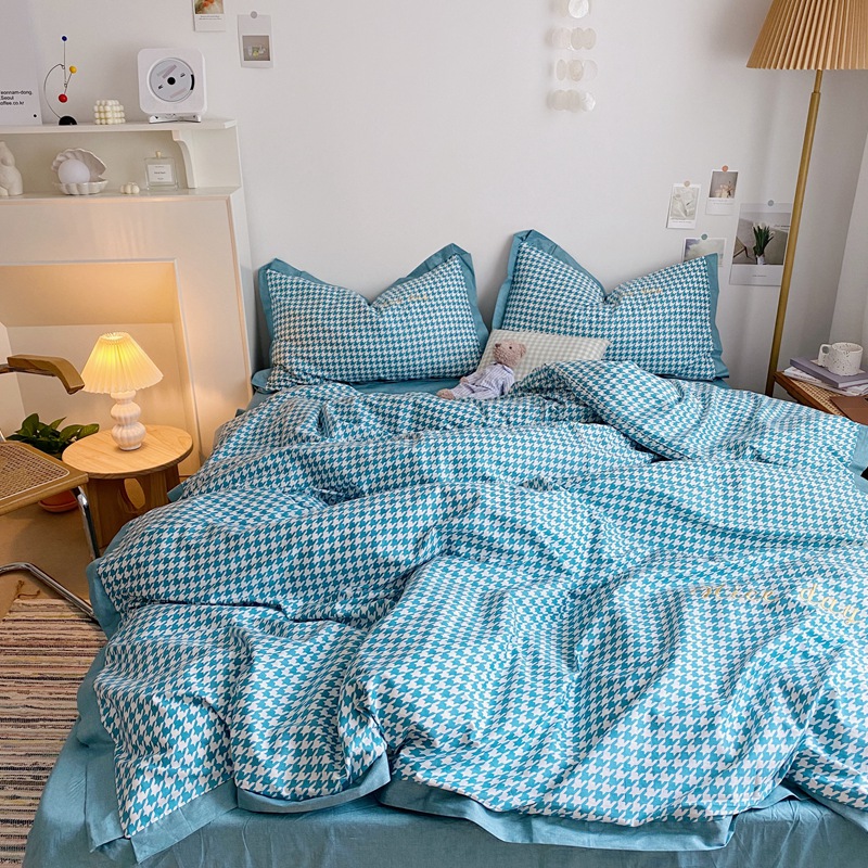 星期八 2021新款13372千鸟格刺绣四件套 千鸟格蓝