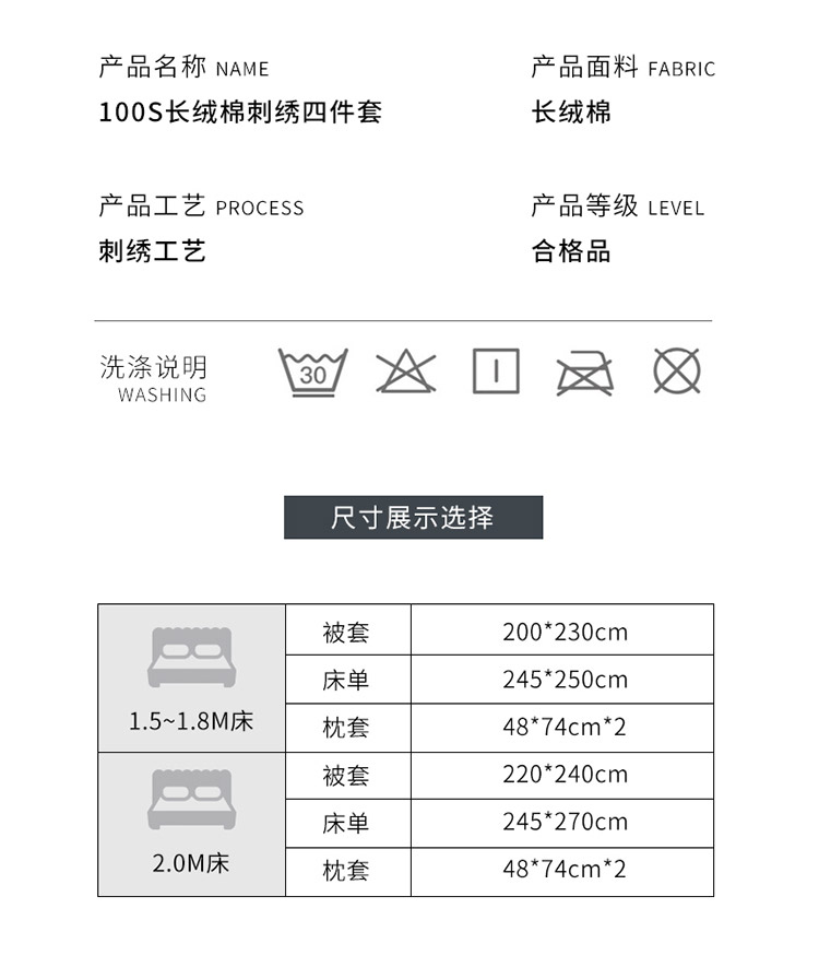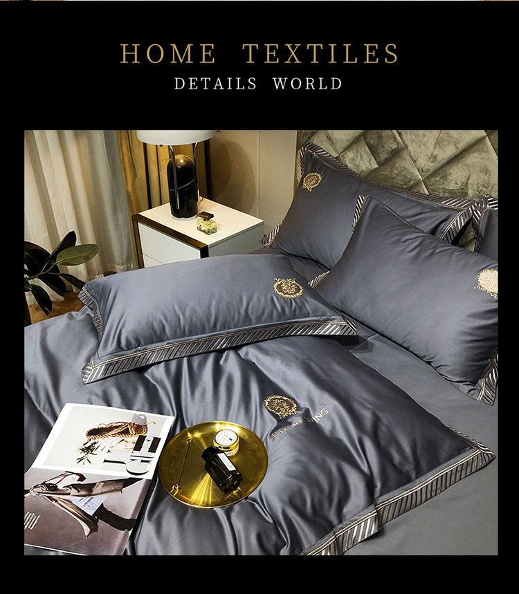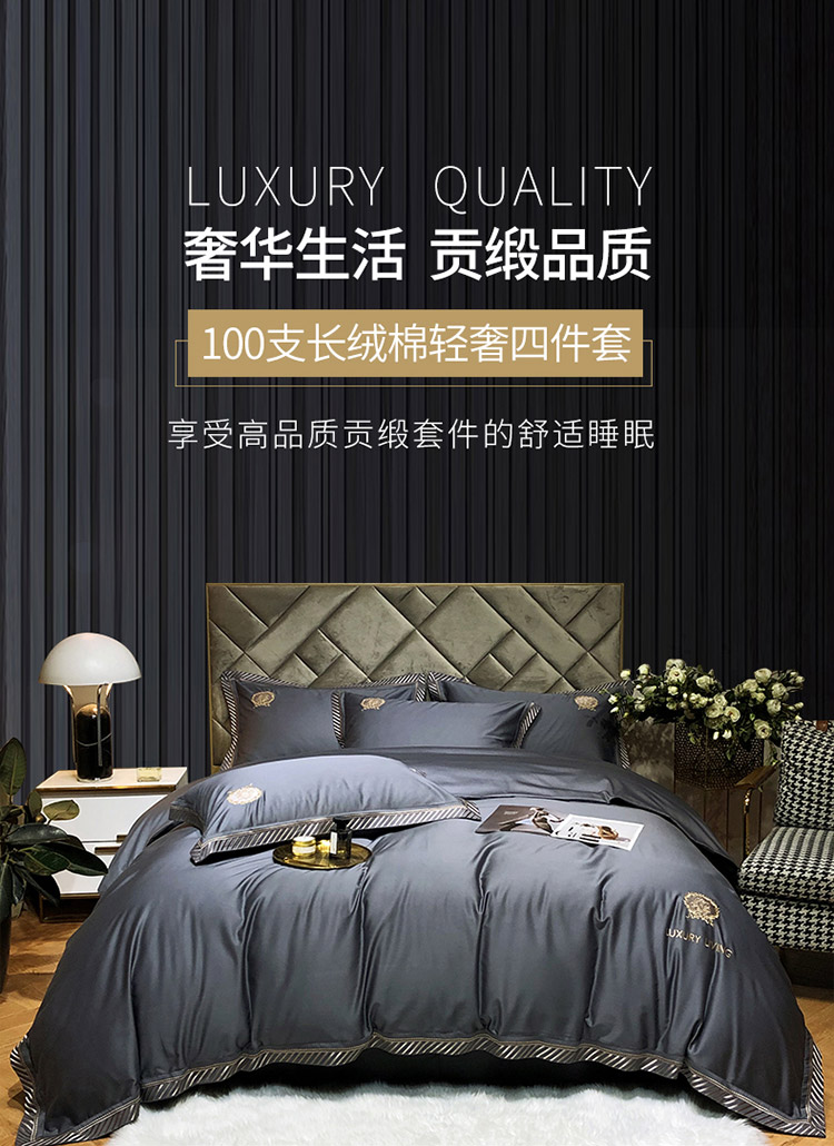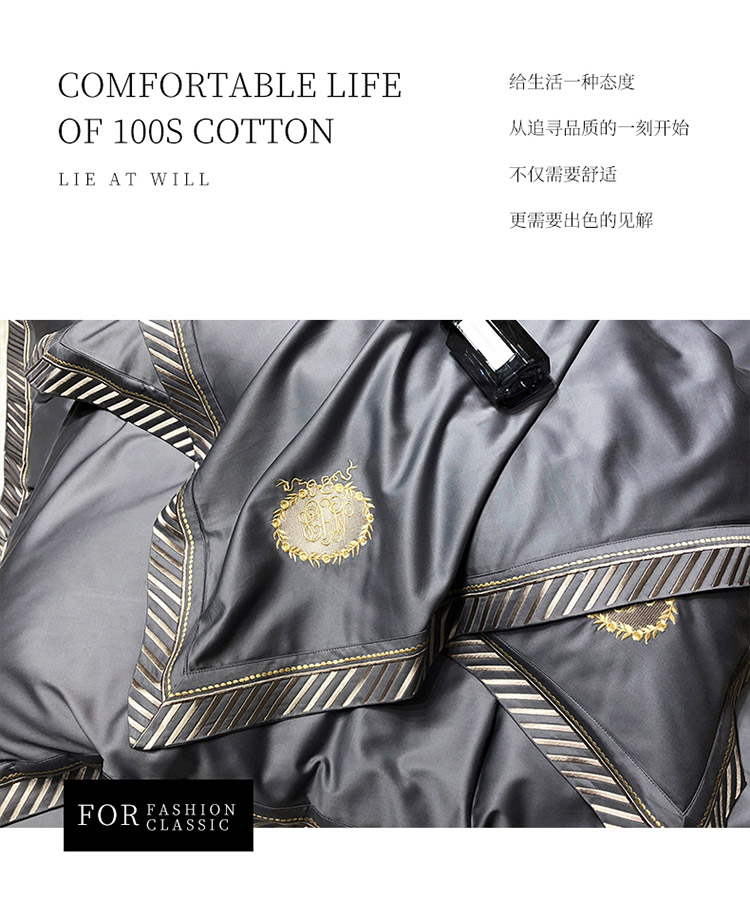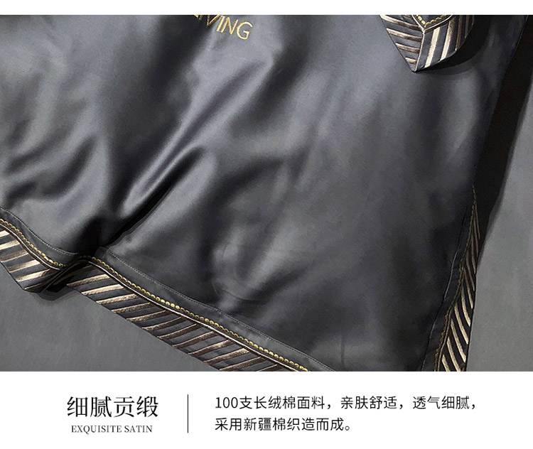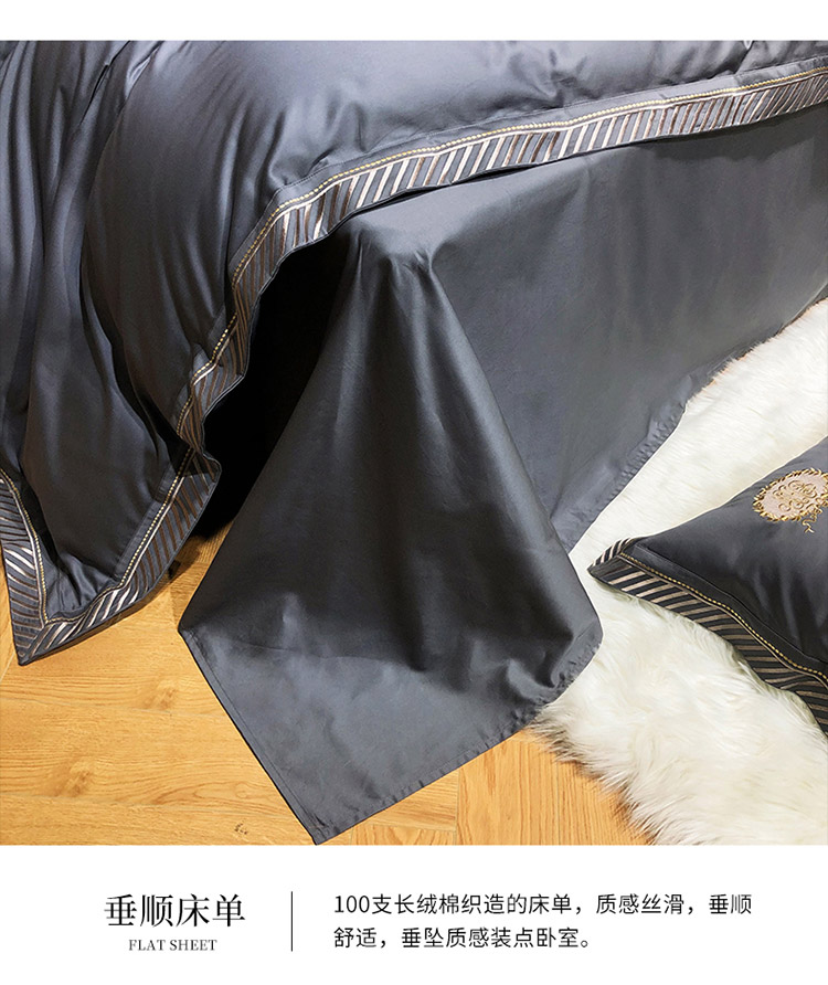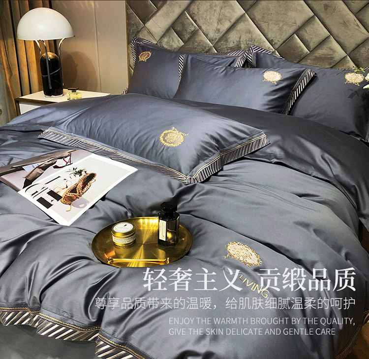 商品名称:爱缦 2021新款100s长绒棉刺绣四件套 褐灰