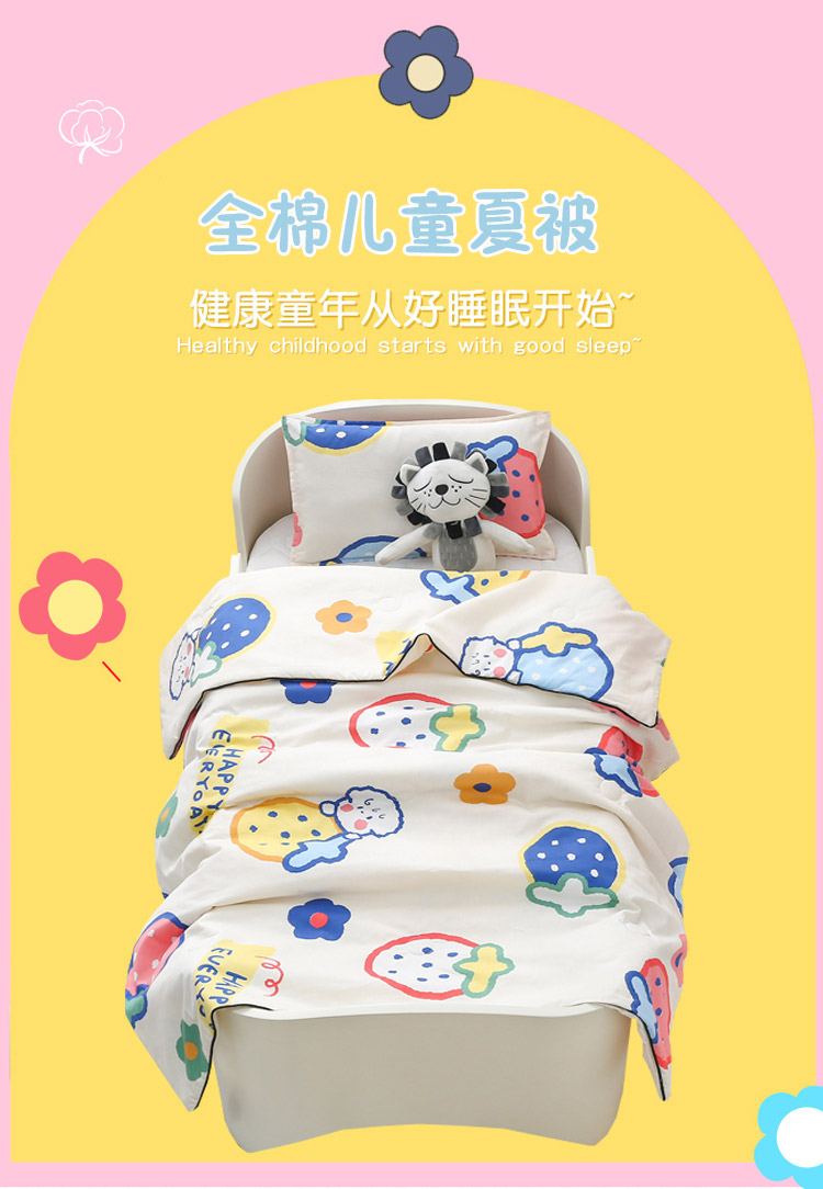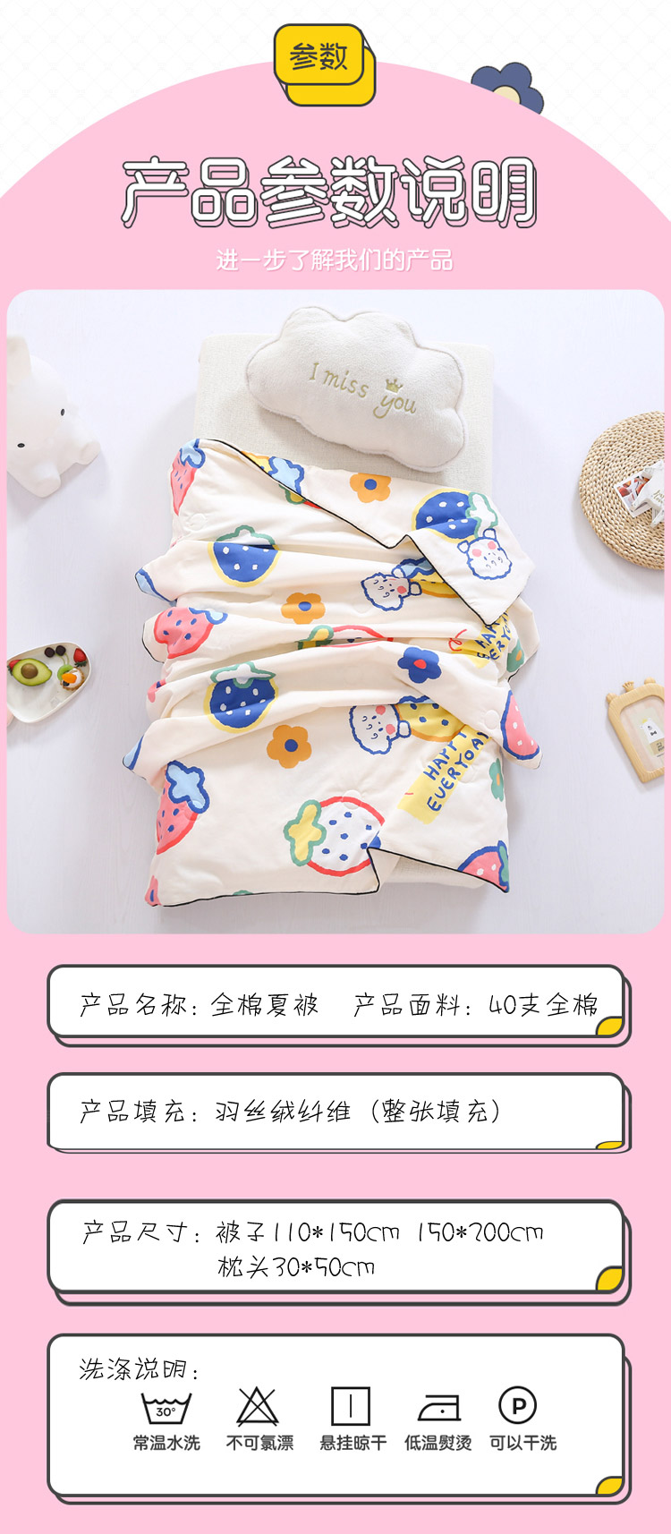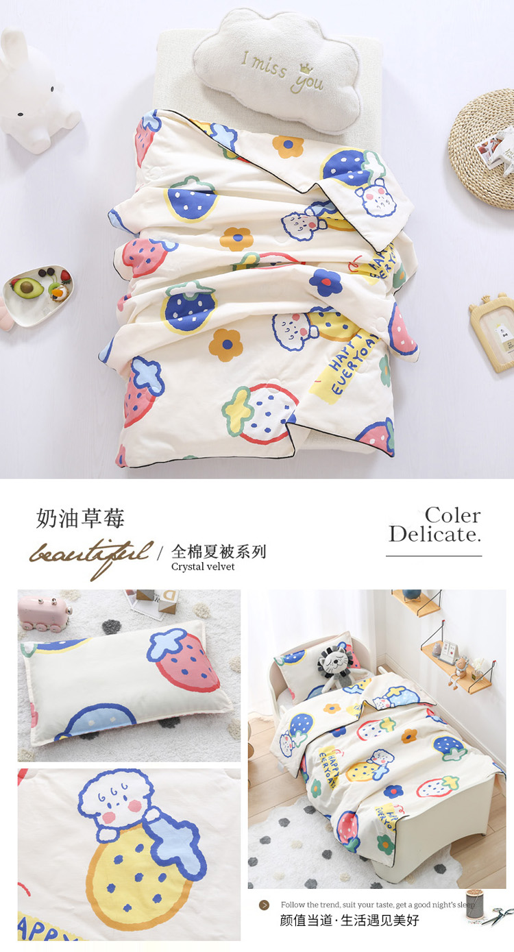 商品名称:鱼宝 2021新款无荧光40贡缎全棉儿童夏被 奶油草莓
