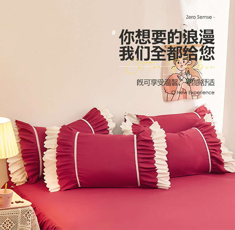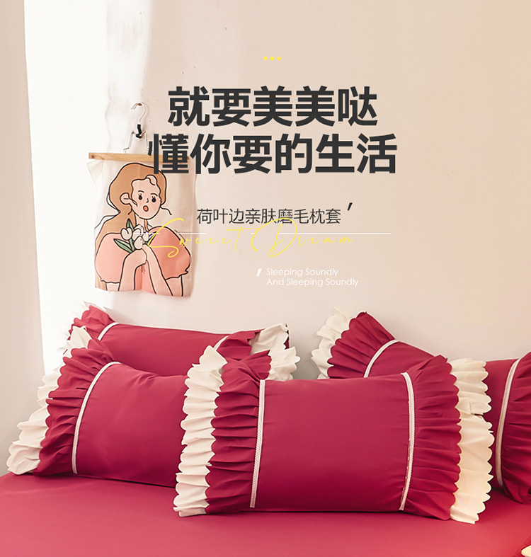 商品名称:莉莉安 2025新款荷叶边亲肤磨毛单枕套-流年系列流年-酒红