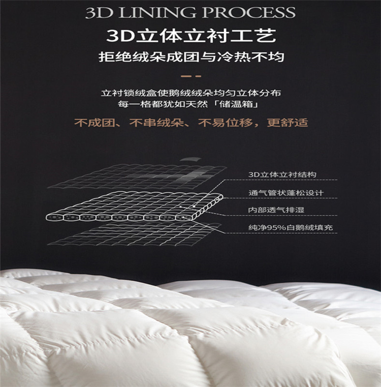 新款 360度透明面料 全棉贡缎伯爵透明鹅绒被羽绒被,白色