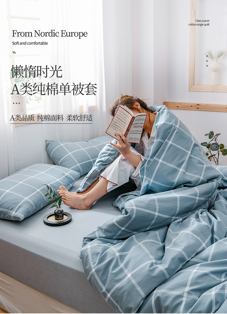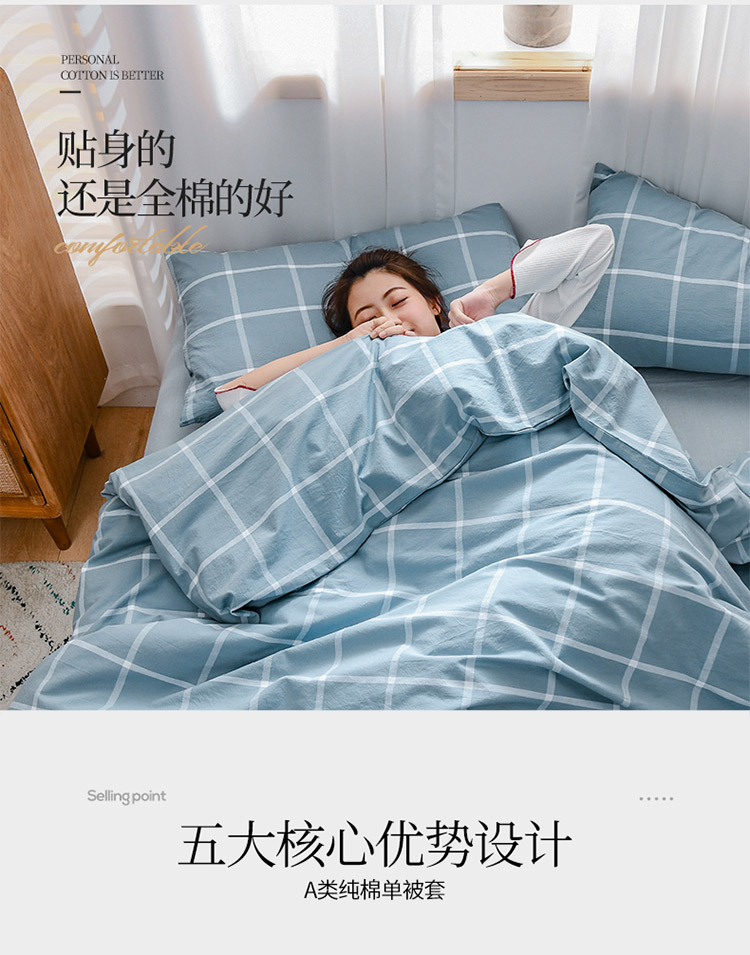 商品名称:恋人优选 2023新款纯棉水洗单被套海蓝格