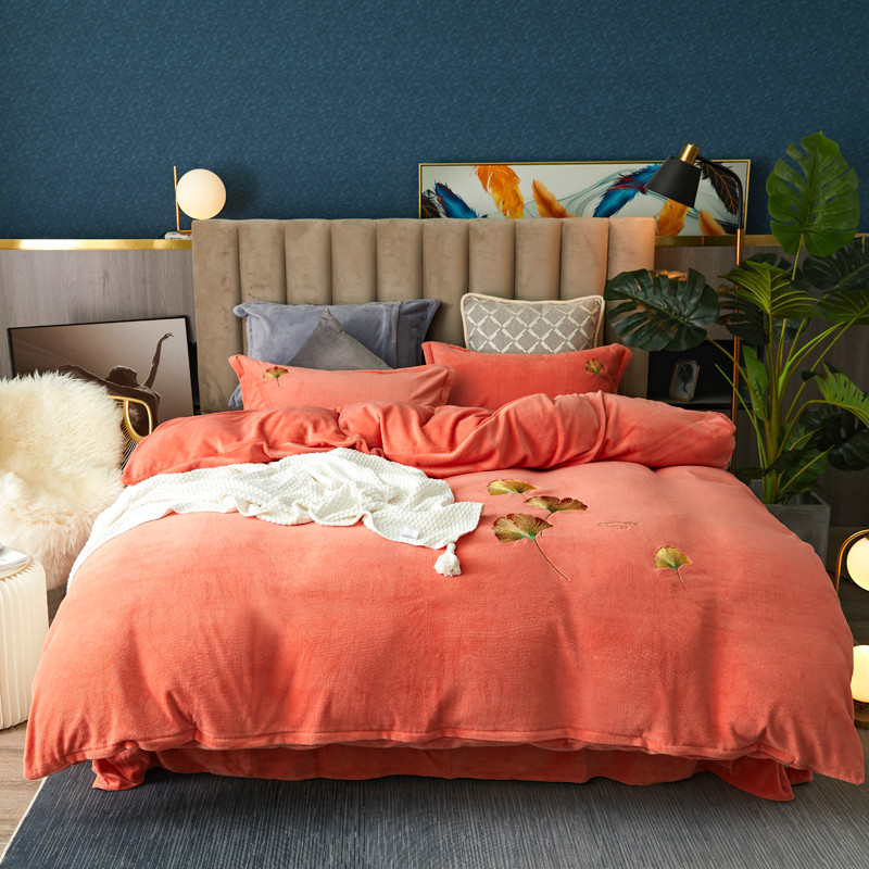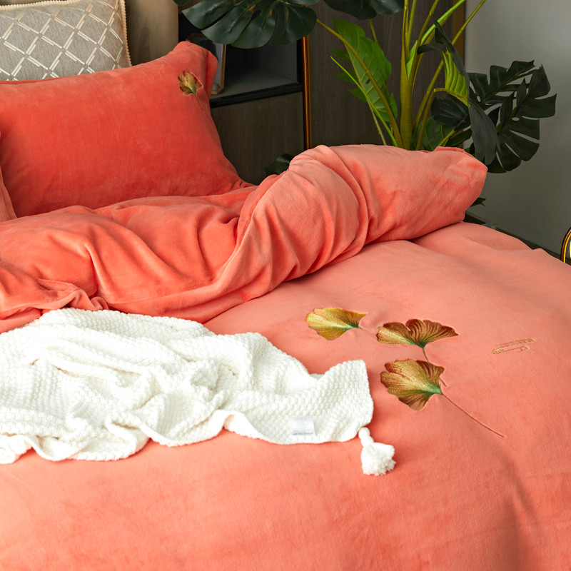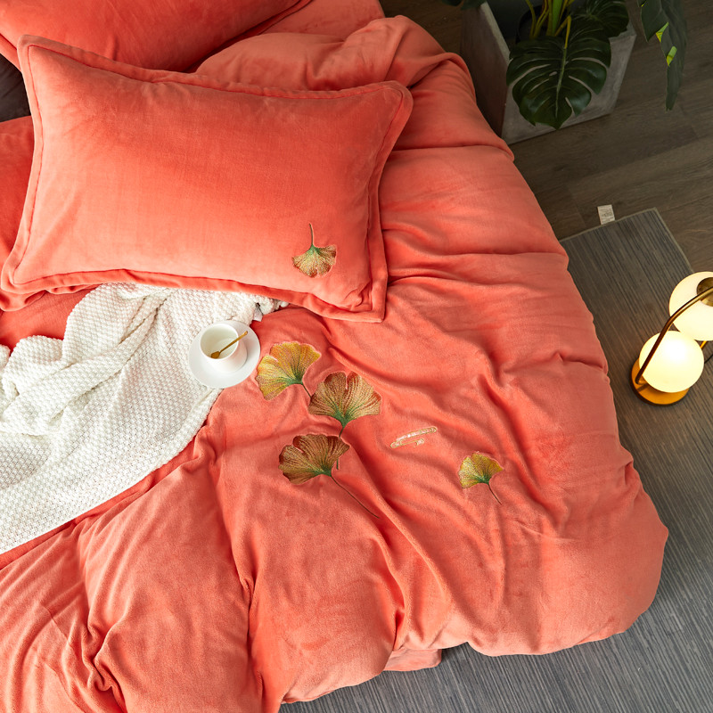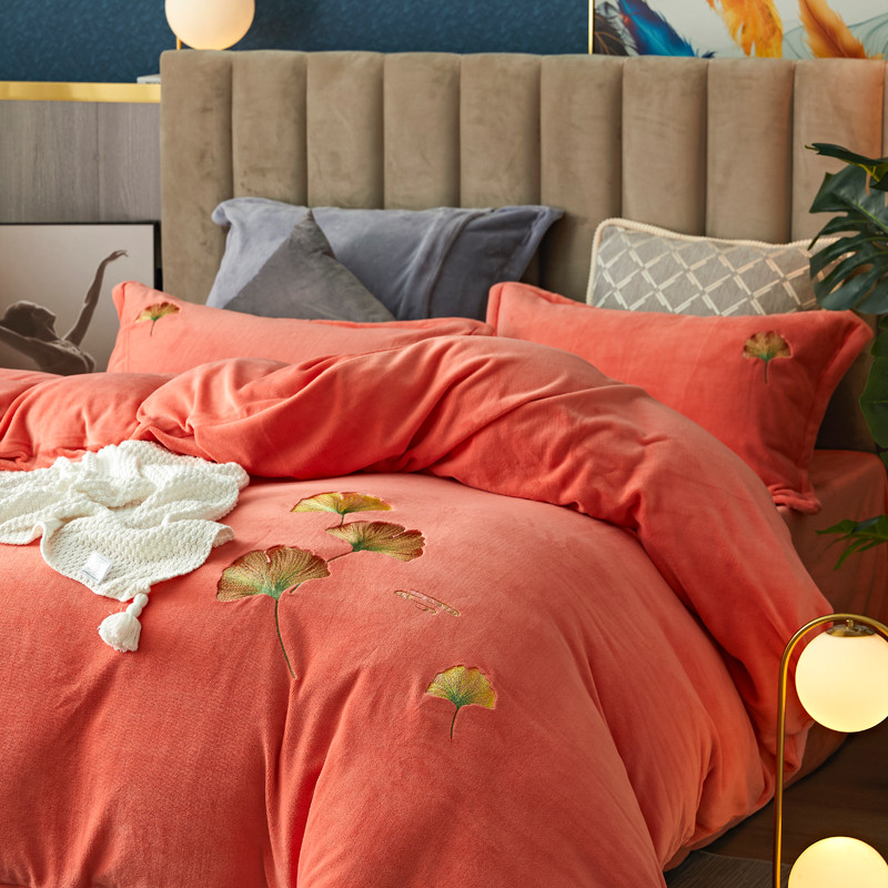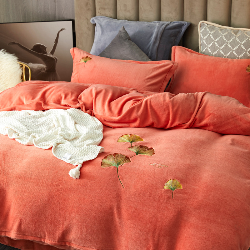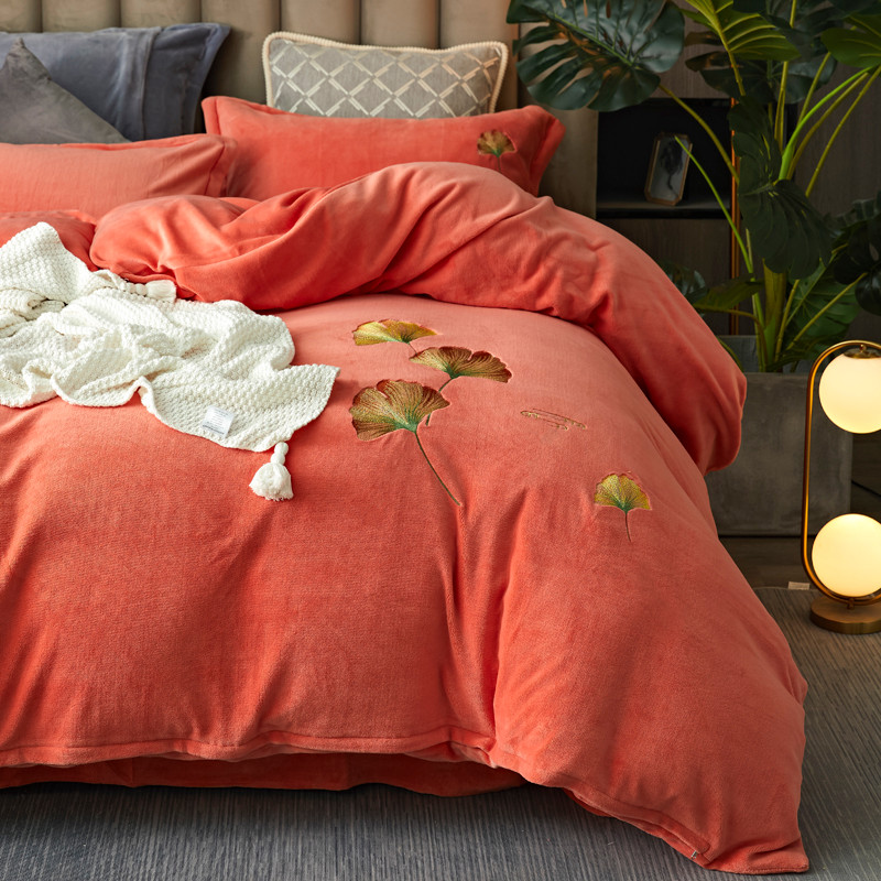 锦罗绣 2021新款牛奶绒绣花四件套 枫叶红