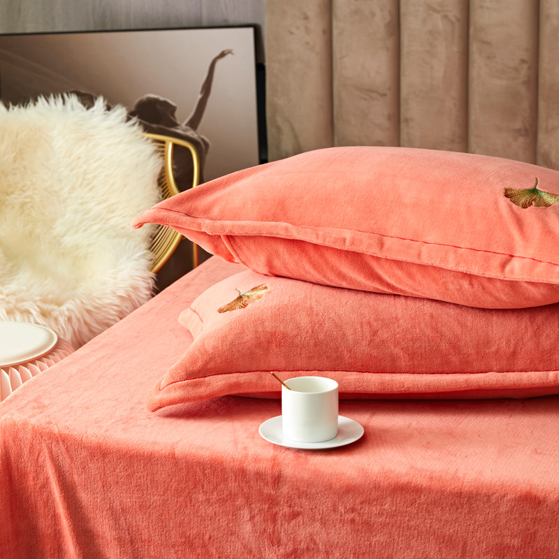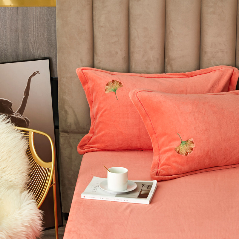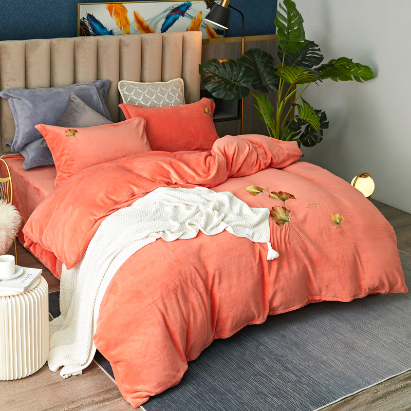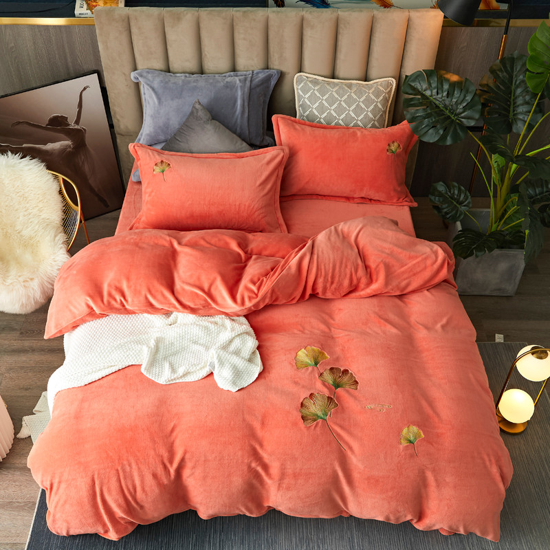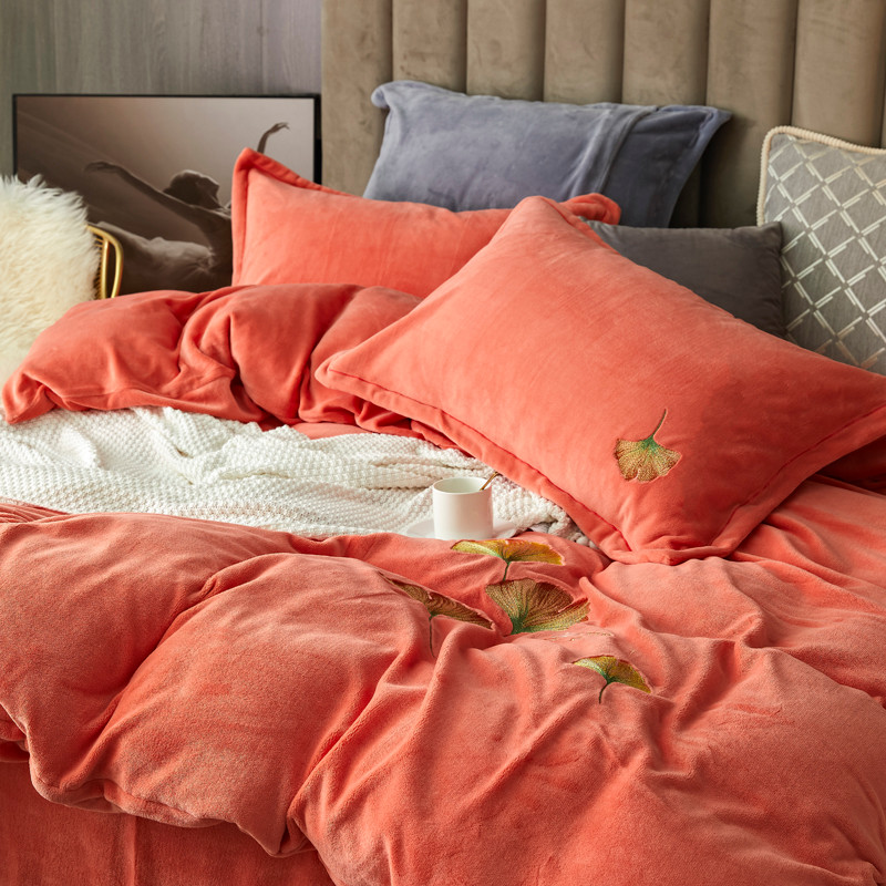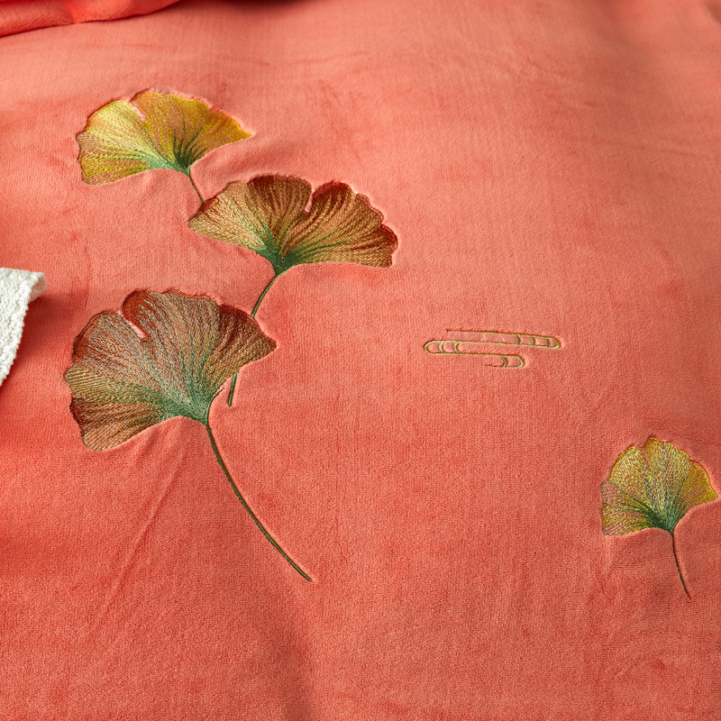 锦罗绣 2021新款牛奶绒绣花四件套 枫叶红