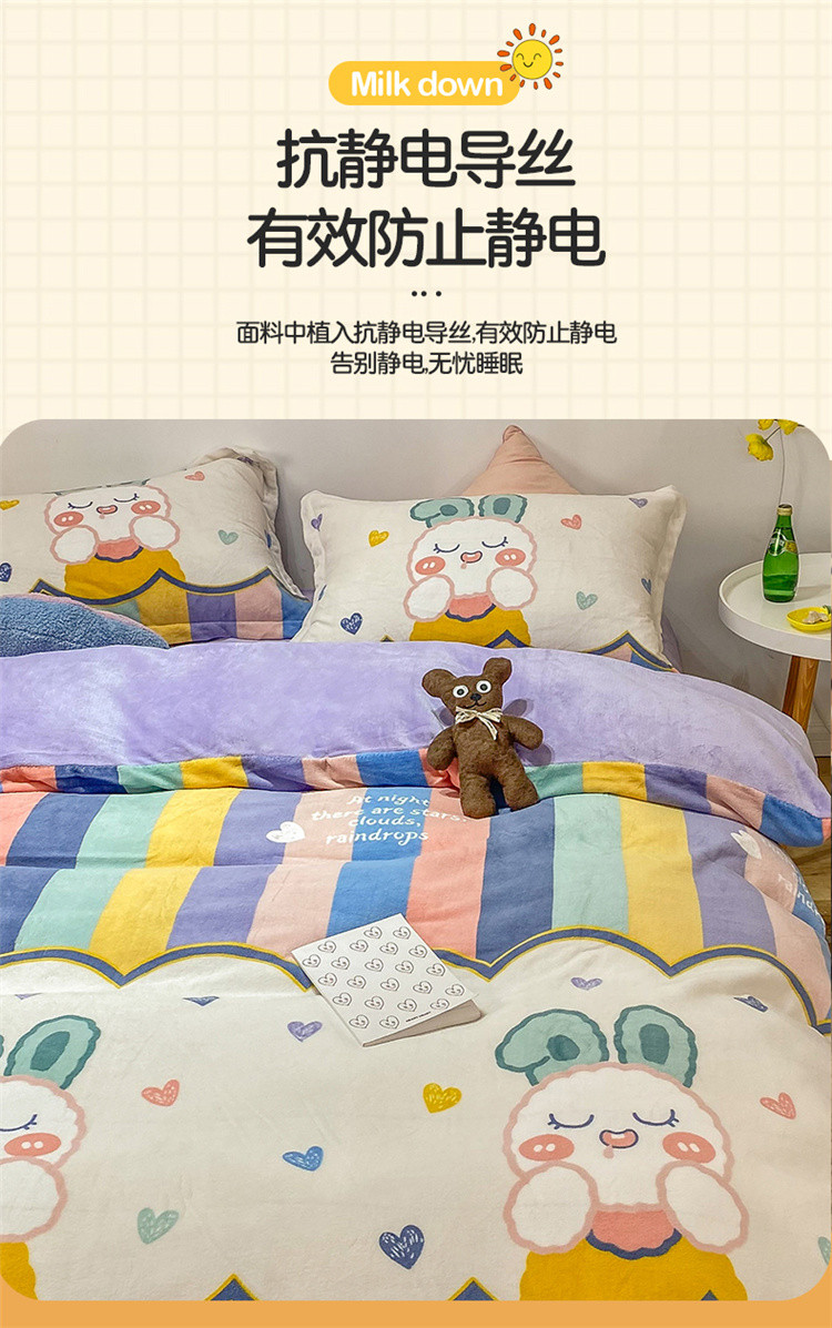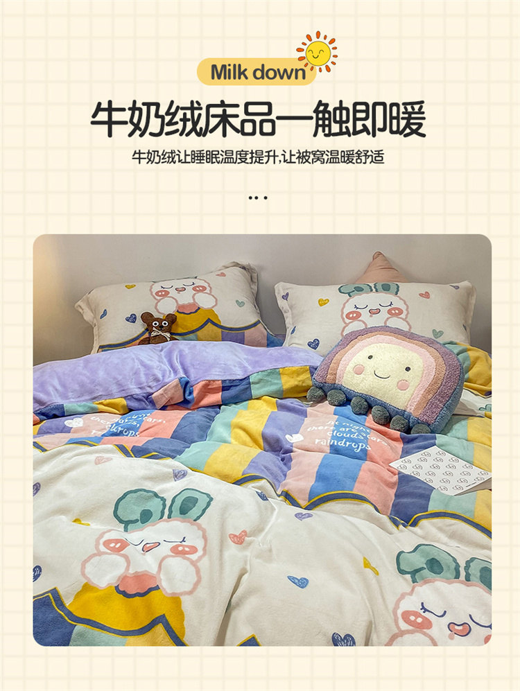 商品名称:优宜家 2023新款双面牛奶绒四件套 莫奈