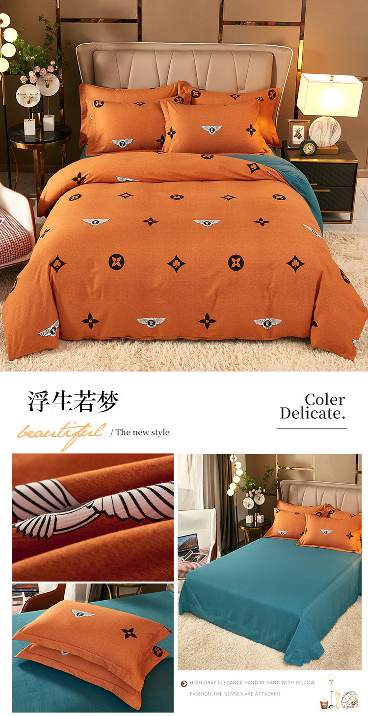 (总)雲归梦 2021新款全棉生态磨毛刺绣四件套,慕思-橙色,慕思-粉紫,慕思-灰,慕思-米黄,慕思-青绿,慕思-天蓝
