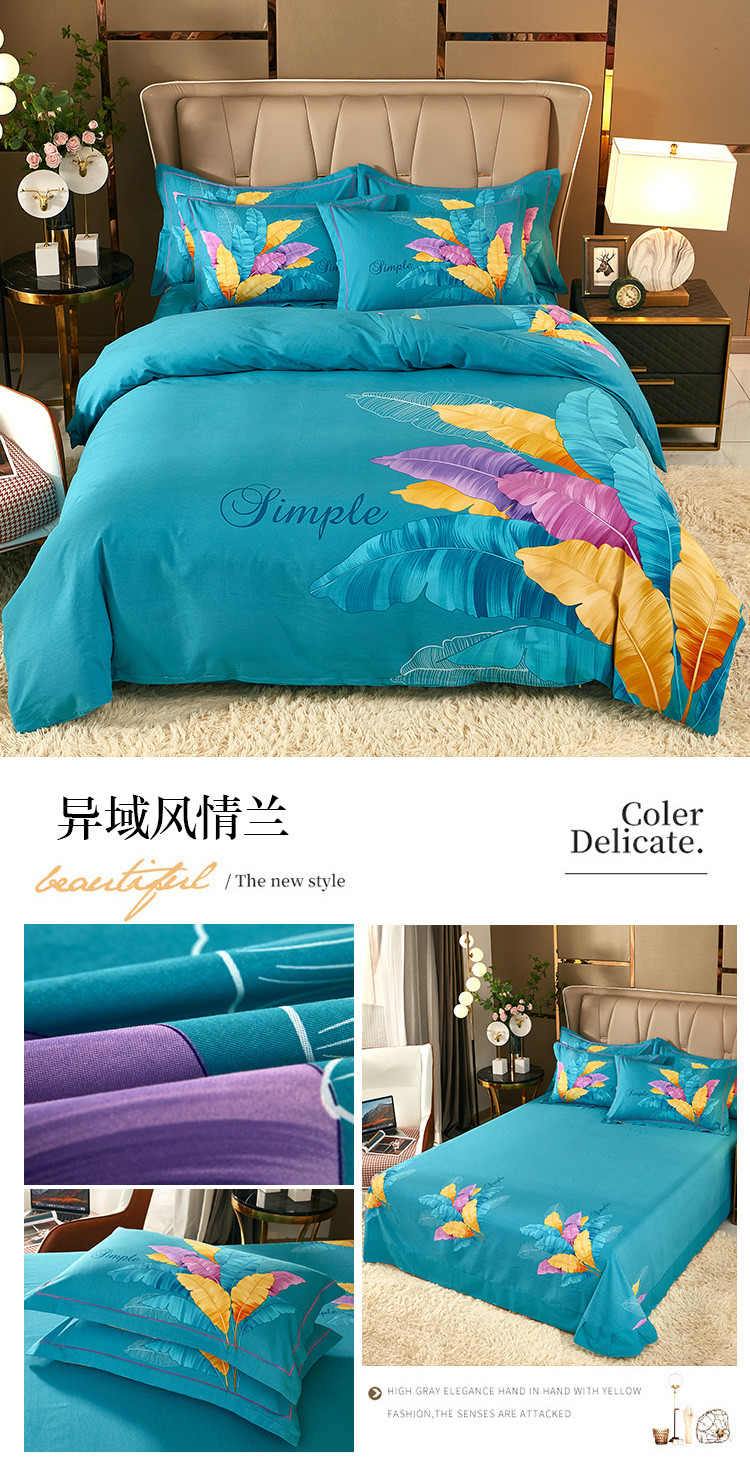 商品名称:雲归梦 2021新款全棉大版生态磨毛四件套第二批 异域风情兰