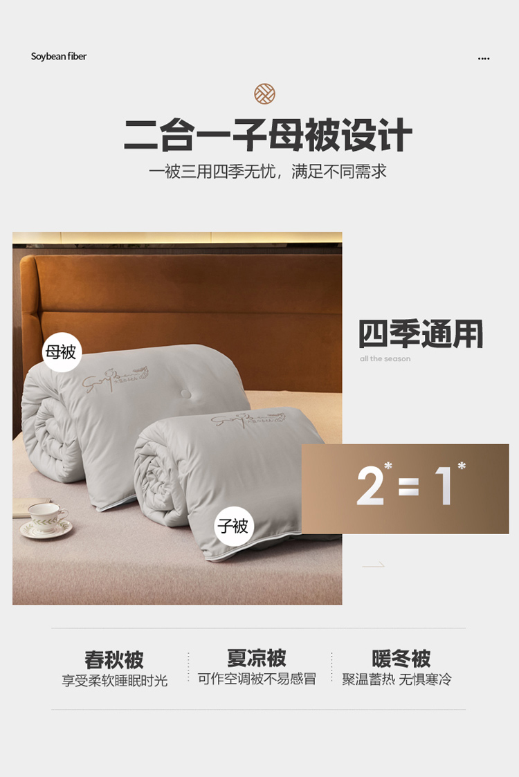 慕尚 2022新款亲肤二合一大豆子母被镶钻款 大豆灰