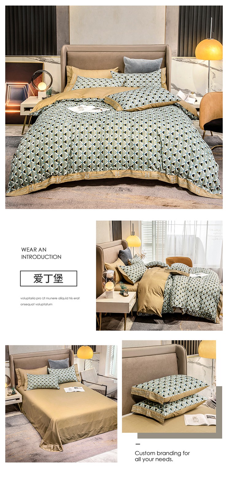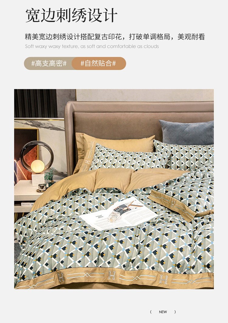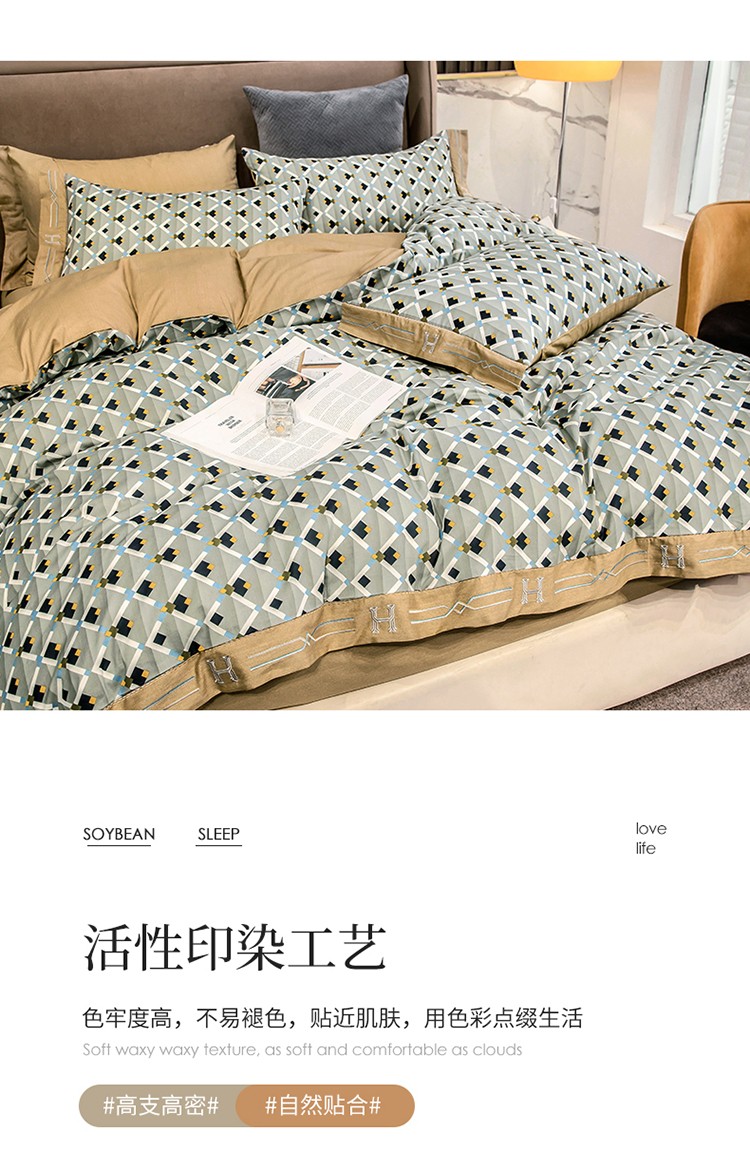 (总)帅露家纺 2025新款A类棉麻活性印染四件套系列,花间意境-红,花间意境-灰,花香满园-红,素锦-咖,香叶时代,映霜-灰,映霜-绿